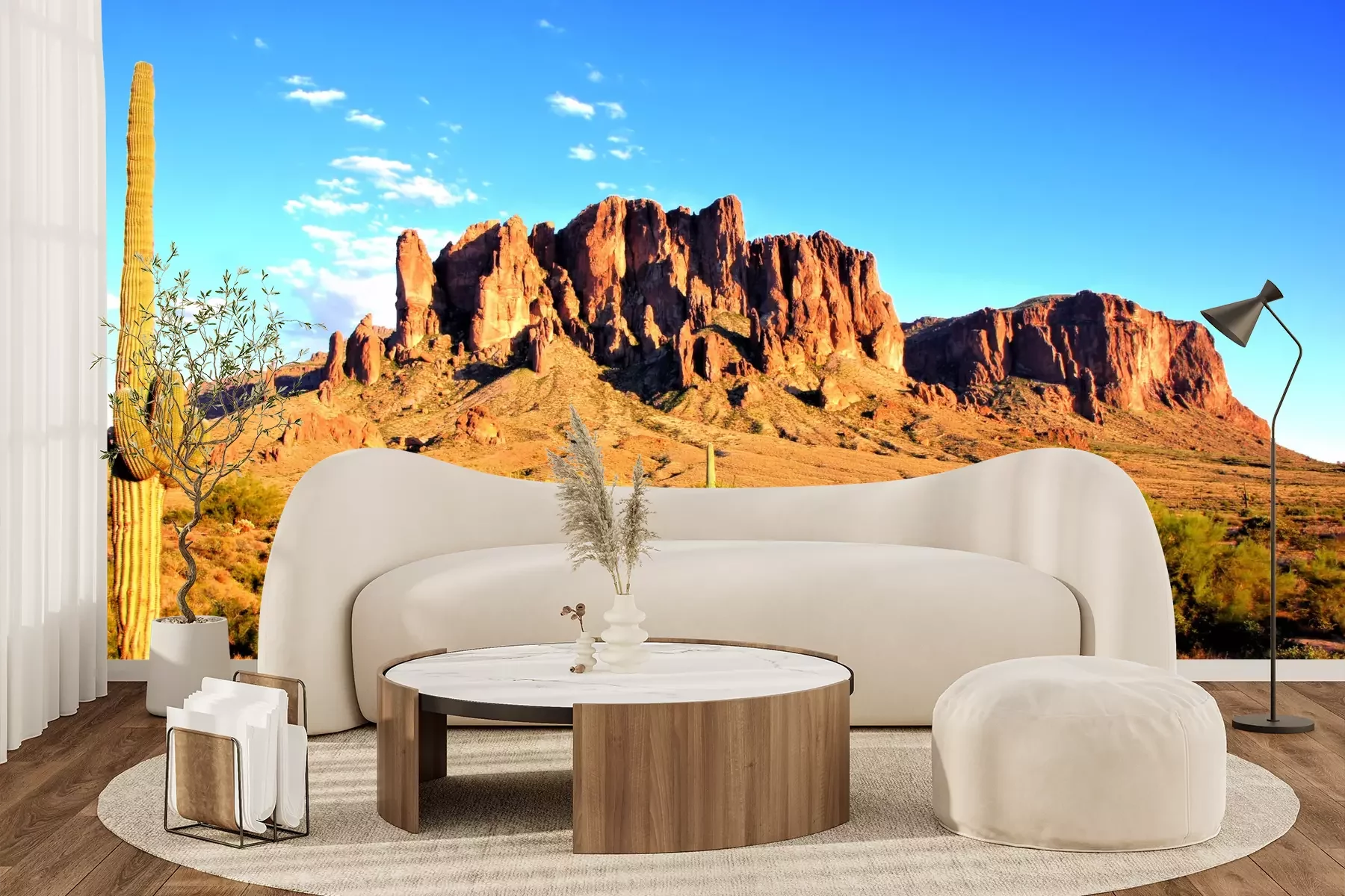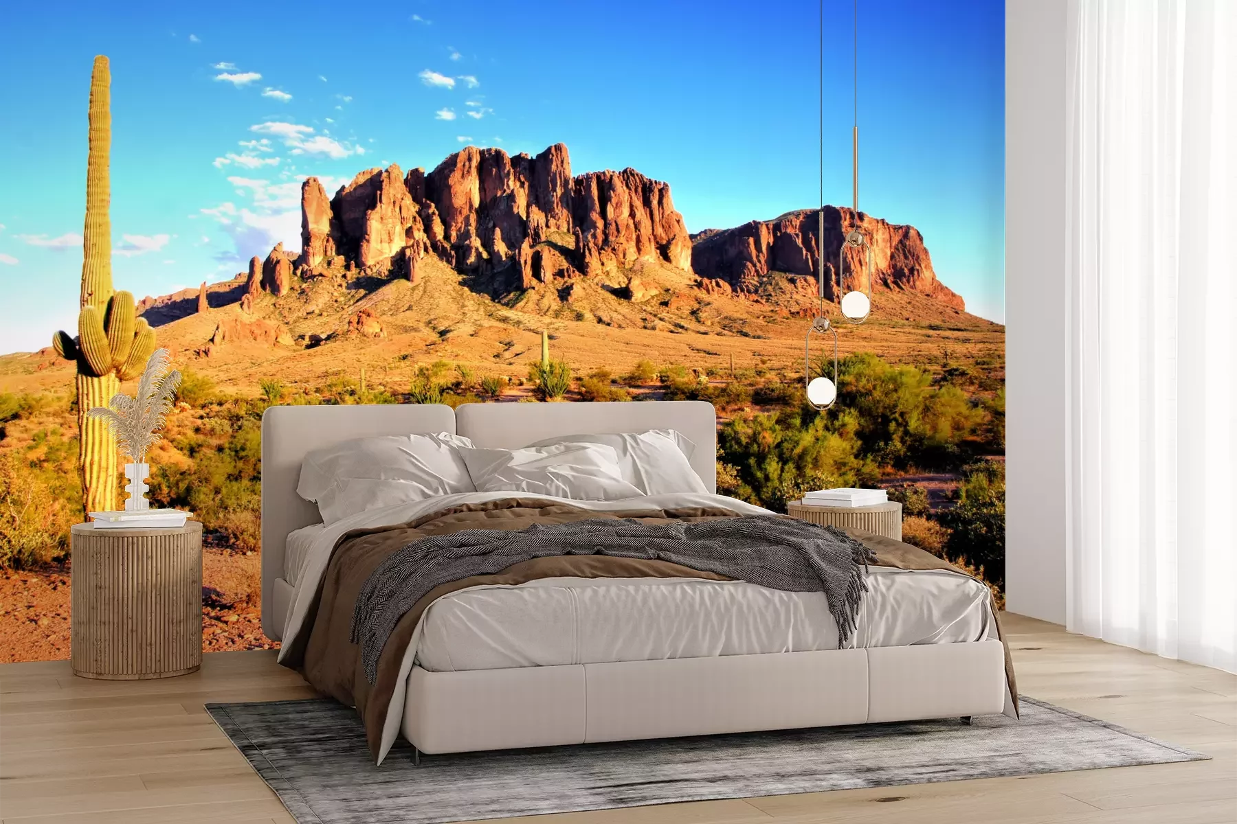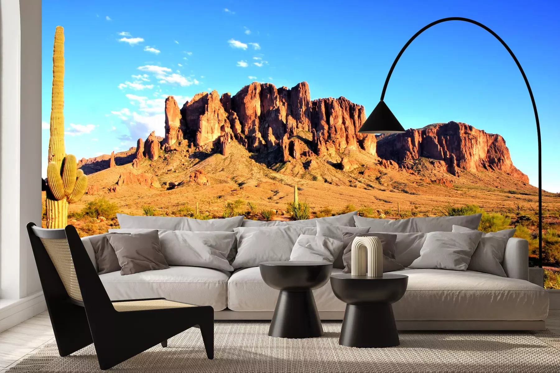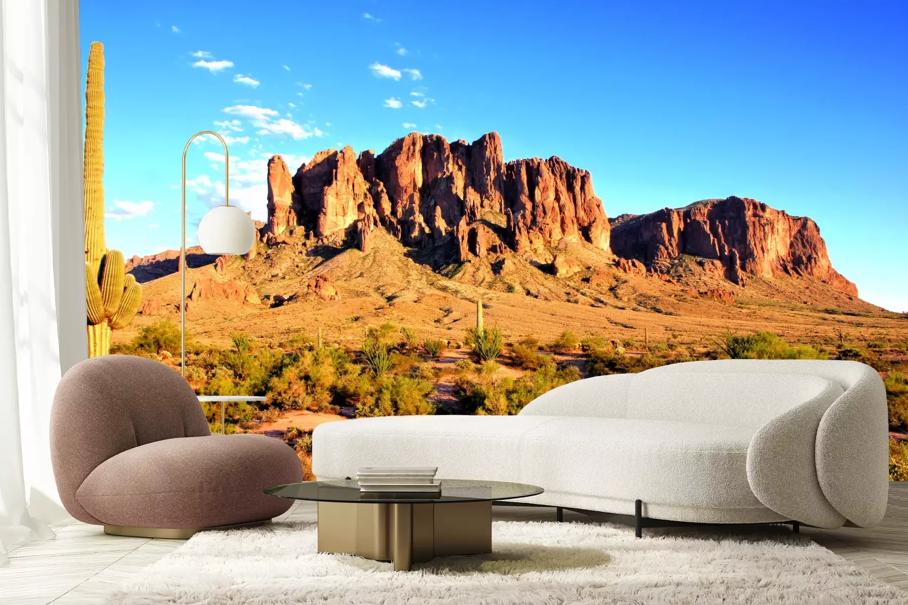 Das Material Premium+ besteht aus einer strukturierten Vinyl-Oberschicht und einem Trägermaterial (Vlies) mit einer Grammatur von 255 g/m², das kleine Unebenheiten der Wand zuverlässig kaschiert. Die feine Sandstruktur verleiht der Oberfläche eine luxuriöse Haptik, während das halbmatte Finish die Tiefe der Farben betont. Das Material ist dampfdurchlässig – so kann diese Fototapete auch in Küchen und Badezimmern eingesetzt werden. Die maximale Breite einer Tapetenbahn beträgt 100 cm. Bei größeren Abmessungen besteht die Fototapete aus mehreren gleich großen Bahnen. Der Kleber wird direkt auf die Wand aufgetragen, und die Fototapete wird auf Stoß angebracht, was für einen ästhetischen Effekt ohne sichtbare Fugen sorgt. Die Oberfläche ist pflegeleicht und kann bei Bedarf sanft mit einem feuchten Tuch abgewischt werden.