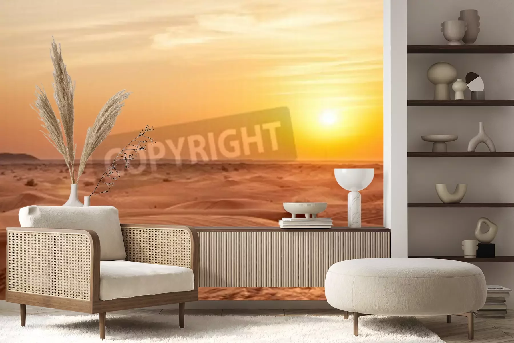 Fototapete Wüste und abendliche Sonne