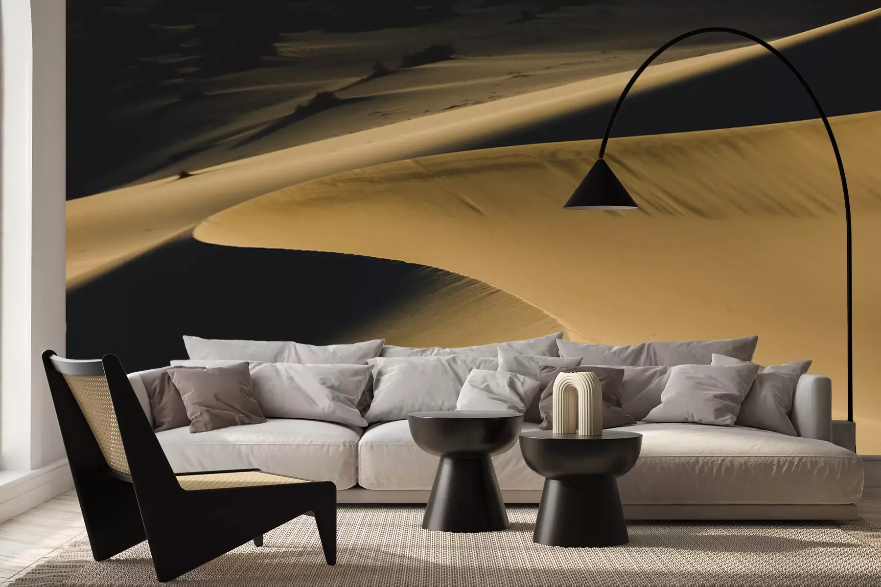 Das Material Premium+ besteht aus einer strukturierten Vinyl-Oberschicht und einem Trägermaterial (Vlies) mit einer Grammatur von 255 g/m², das kleine Unebenheiten der Wand zuverlässig kaschiert. Die feine Sandstruktur verleiht der Oberfläche eine luxuriöse Haptik, während das halbmatte Finish die Tiefe der Farben betont. Das Material ist dampfdurchlässig – so kann diese Fototapete auch in Küchen und Badezimmern eingesetzt werden. Die maximale Breite einer Tapetenbahn beträgt 100 cm. Bei größeren Abmessungen besteht die Fototapete aus mehreren gleich großen Bahnen. Der Kleber wird direkt auf die Wand aufgetragen, und die Fototapete wird auf Stoß angebracht, was für einen ästhetischen Effekt ohne sichtbare Fugen sorgt. Die Oberfläche ist pflegeleicht und kann bei Bedarf sanft mit einem feuchten Tuch abgewischt werden.
