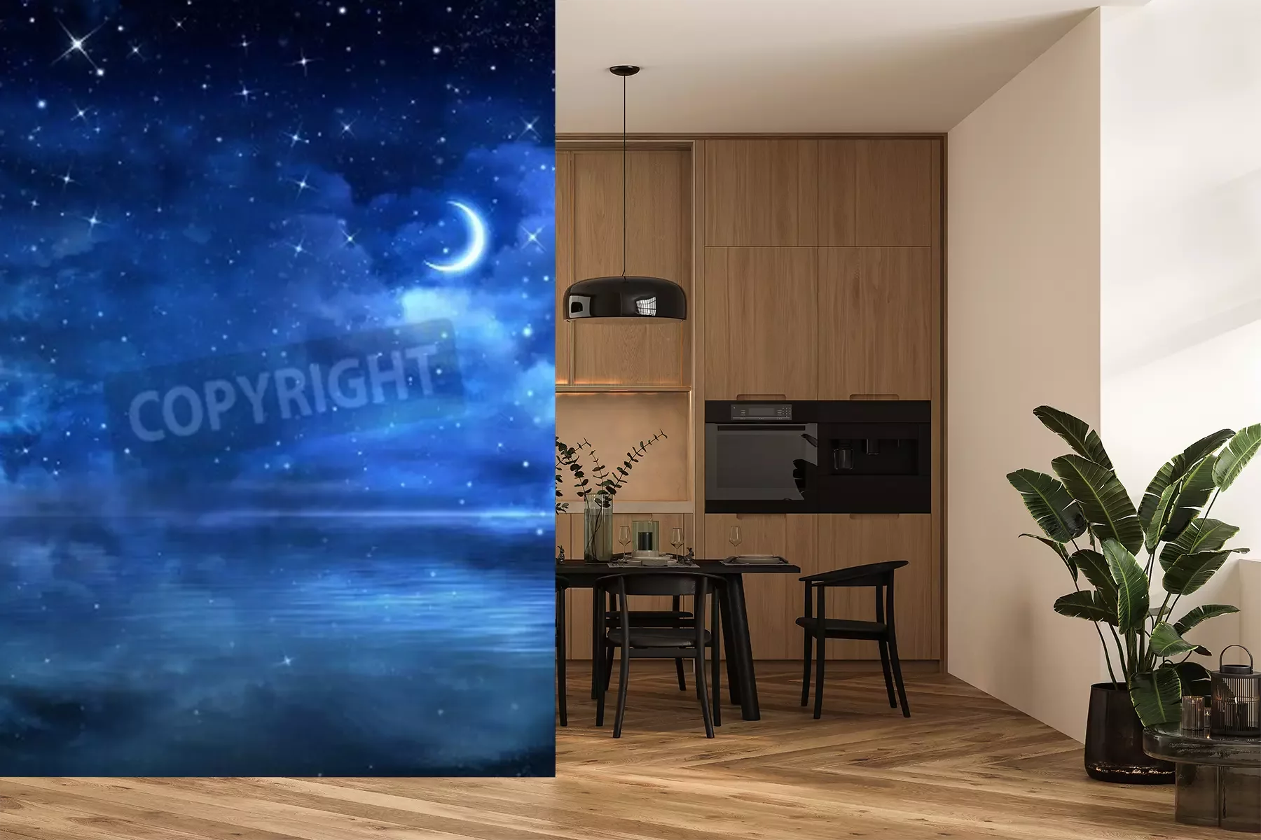 Das Material Premium+ besteht aus einer strukturierten Vinyl-Oberschicht und einem Trägermaterial (Vlies) mit einer Grammatur von 255 g/m², das kleine Unebenheiten der Wand zuverlässig kaschiert. Die feine Sandstruktur verleiht der Oberfläche eine luxuriöse Haptik, während das halbmatte Finish die Tiefe der Farben betont. Das Material ist dampfdurchlässig – so kann diese Fototapete auch in Küchen und Badezimmern eingesetzt werden. Die maximale Breite einer Tapetenbahn beträgt 100 cm. Bei größeren Abmessungen besteht die Fototapete aus mehreren gleich großen Bahnen. Der Kleber wird direkt auf die Wand aufgetragen, und die Fototapete wird auf Stoß angebracht, was für einen ästhetischen Effekt ohne sichtbare Fugen sorgt. Die Oberfläche ist pflegeleicht und kann bei Bedarf sanft mit einem feuchten Tuch abgewischt werden.