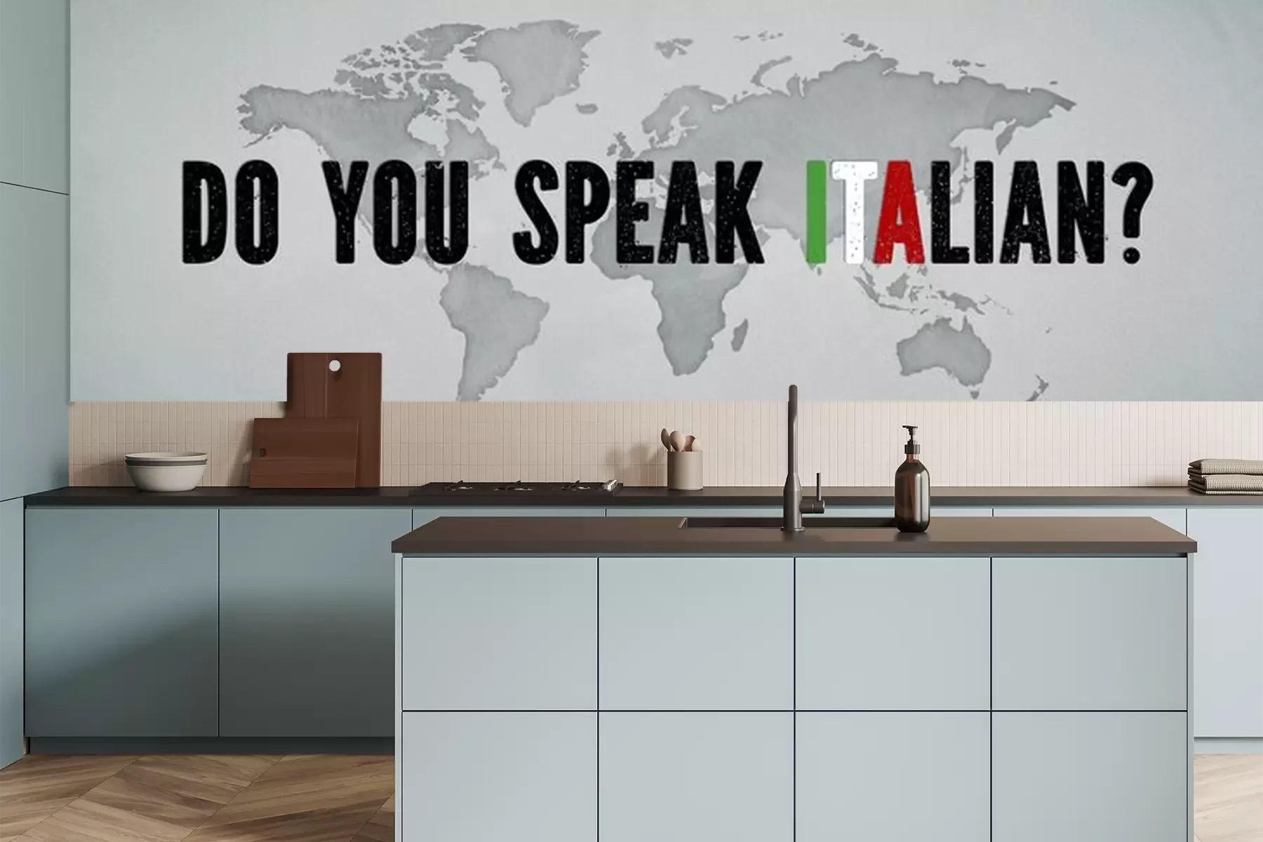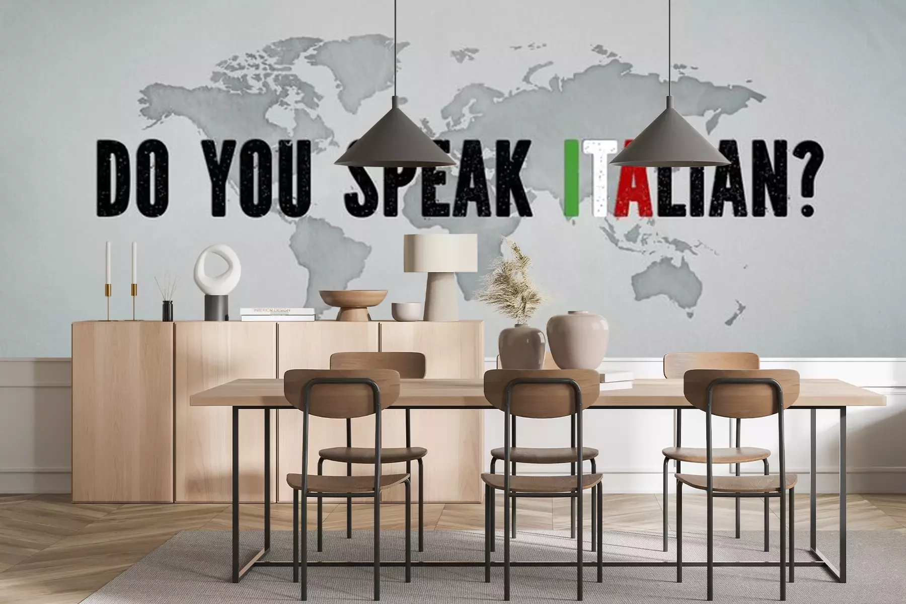 Fototapete Weltkarte mit Aufschrift „Sprechen Sie Italienisch?“