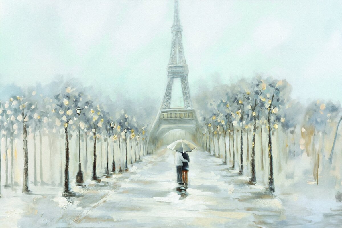 Fototapete: Zarte Aquarell mit dem Eiffelturm und Straßenlaternen