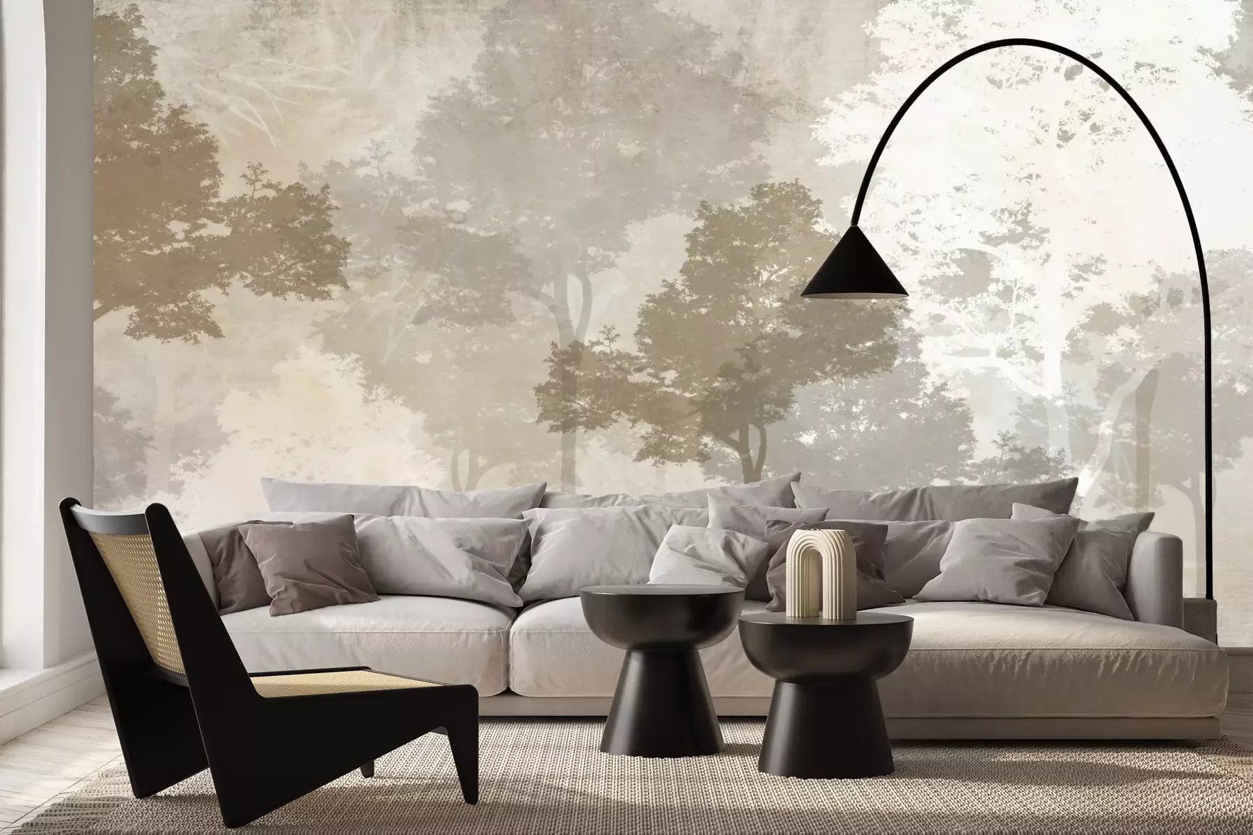 Das Material Premium+ besteht aus einer strukturierten Vinyl-Oberschicht und einem Trägermaterial (Vlies) mit einer Grammatur von 255 g/m², das kleine Unebenheiten der Wand zuverlässig kaschiert. Die feine Sandstruktur verleiht der Oberfläche eine luxuriöse Haptik, während das halbmatte Finish die Tiefe der Farben betont. Das Material ist dampfdurchlässig – so kann diese Fototapete auch in Küchen und Badezimmern eingesetzt werden. Die maximale Breite einer Tapetenbahn beträgt 100 cm. Bei größeren Abmessungen besteht die Fototapete aus mehreren gleich großen Bahnen. Der Kleber wird direkt auf die Wand aufgetragen, und die Fototapete wird auf Stoß angebracht, was für einen ästhetischen Effekt ohne sichtbare Fugen sorgt. Die Oberfläche ist pflegeleicht und kann bei Bedarf sanft mit einem feuchten Tuch abgewischt werden.