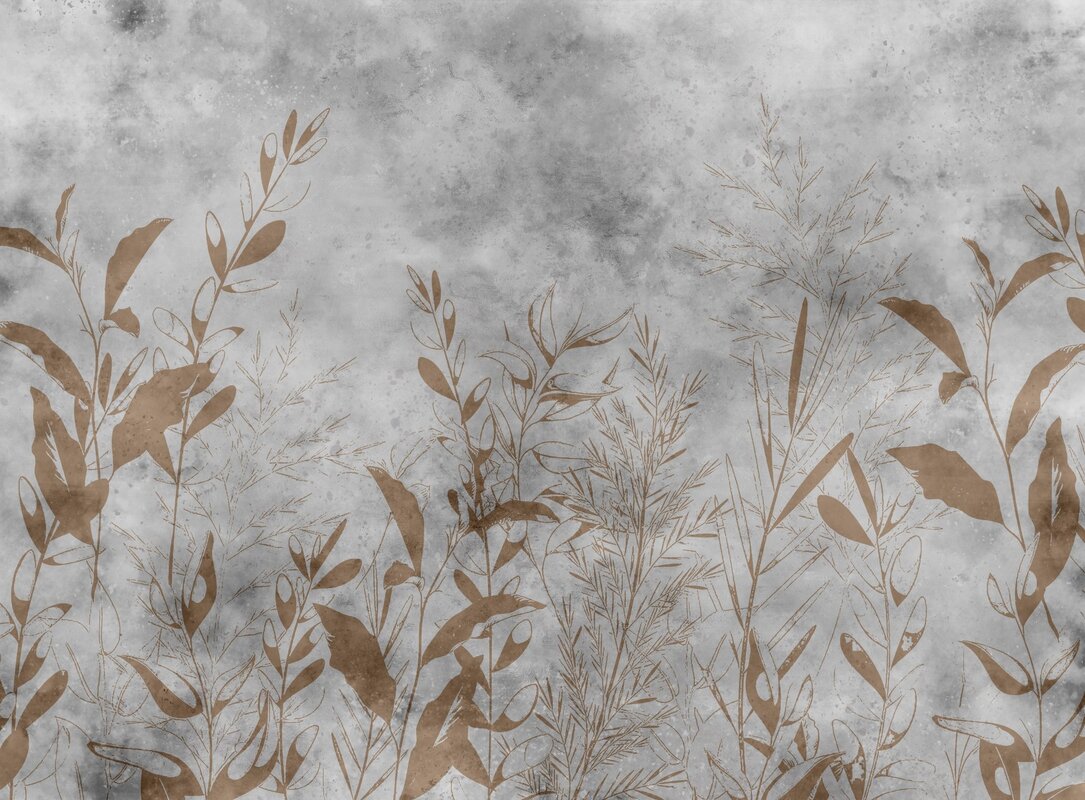 Fototapete: Zarte Blätter auf grauem Betonhintergrund