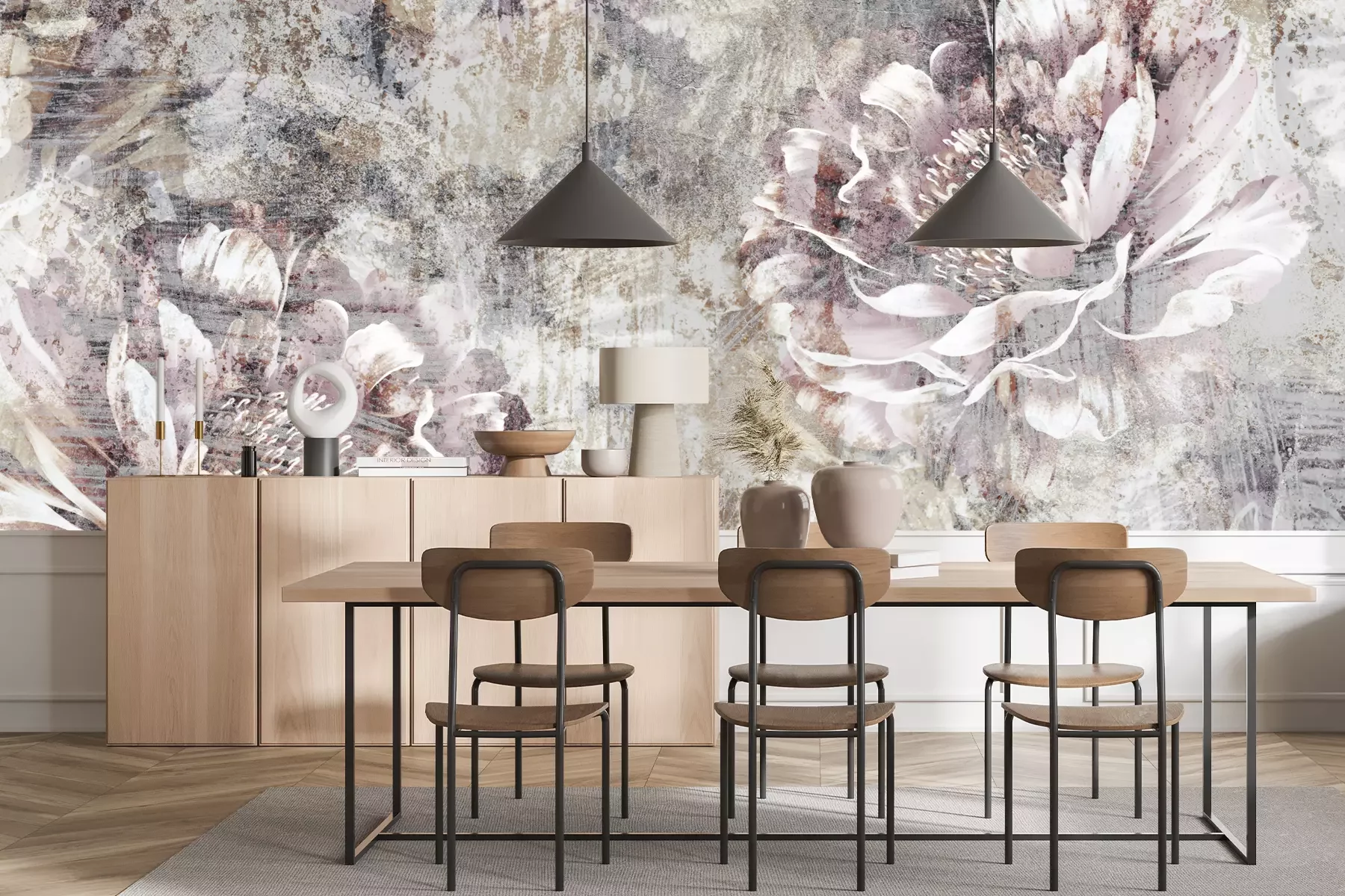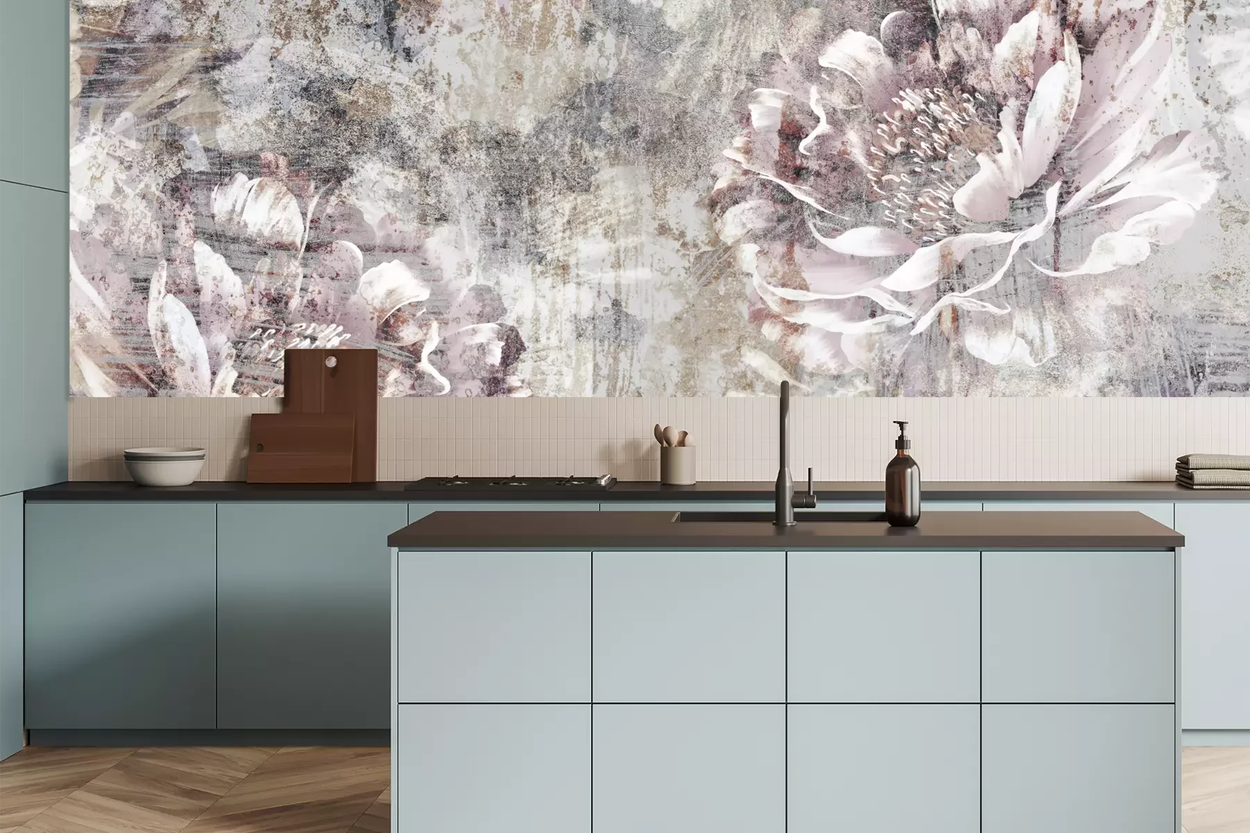 Das Material Premium+ besteht aus einer strukturierten Vinyl-Oberschicht und einem Trägermaterial (Vlies) mit einer Grammatur von 255 g/m², das kleine Unebenheiten der Wand zuverlässig kaschiert. Die feine Sandstruktur verleiht der Oberfläche eine luxuriöse Haptik, während das halbmatte Finish die Tiefe der Farben betont. Das Material ist dampfdurchlässig – so kann diese Fototapete auch in Küchen und Badezimmern eingesetzt werden. Die maximale Breite einer Tapetenbahn beträgt 100 cm. Bei größeren Abmessungen besteht die Fototapete aus mehreren gleich großen Bahnen. Der Kleber wird direkt auf die Wand aufgetragen, und die Fototapete wird auf Stoß angebracht, was für einen ästhetischen Effekt ohne sichtbare Fugen sorgt. Die Oberfläche ist pflegeleicht und kann bei Bedarf sanft mit einem feuchten Tuch abgewischt werden.