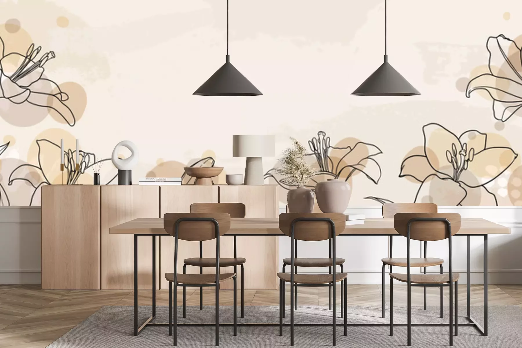Fototapete Zarte Blumen auf Aquarellhintergrund