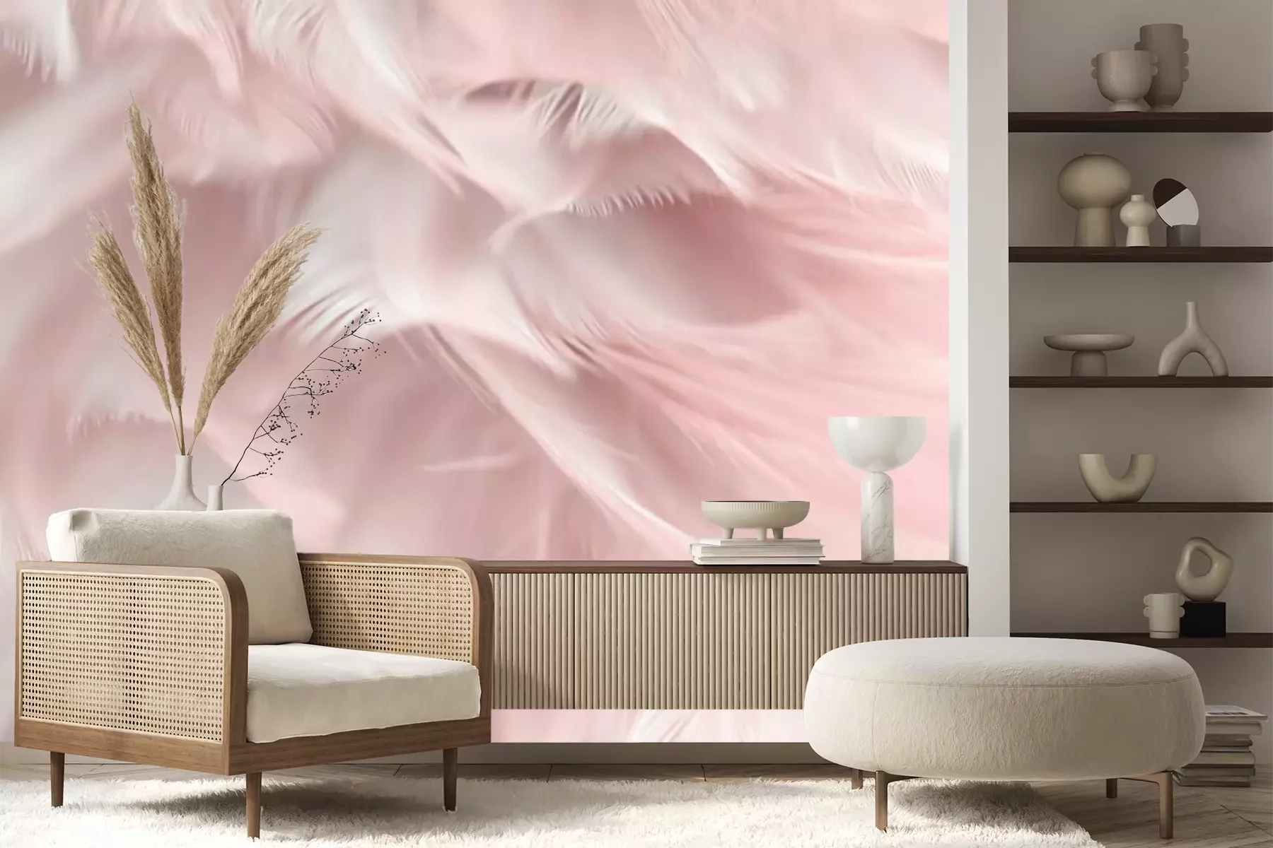 Das Material Premium+ besteht aus einer strukturierten Vinyl-Oberschicht und einem Trägermaterial (Vlies) mit einer Grammatur von 255 g/m², das kleine Unebenheiten der Wand zuverlässig kaschiert. Die feine Sandstruktur verleiht der Oberfläche eine luxuriöse Haptik, während das halbmatte Finish die Tiefe der Farben betont. Das Material ist dampfdurchlässig – so kann diese Fototapete auch in Küchen und Badezimmern eingesetzt werden. Die maximale Breite einer Tapetenbahn beträgt 100 cm. Bei größeren Abmessungen besteht die Fototapete aus mehreren gleich großen Bahnen. Der Kleber wird direkt auf die Wand aufgetragen, und die Fototapete wird auf Stoß angebracht, was für einen ästhetischen Effekt ohne sichtbare Fugen sorgt. Die Oberfläche ist pflegeleicht und kann bei Bedarf sanft mit einem feuchten Tuch abgewischt werden.