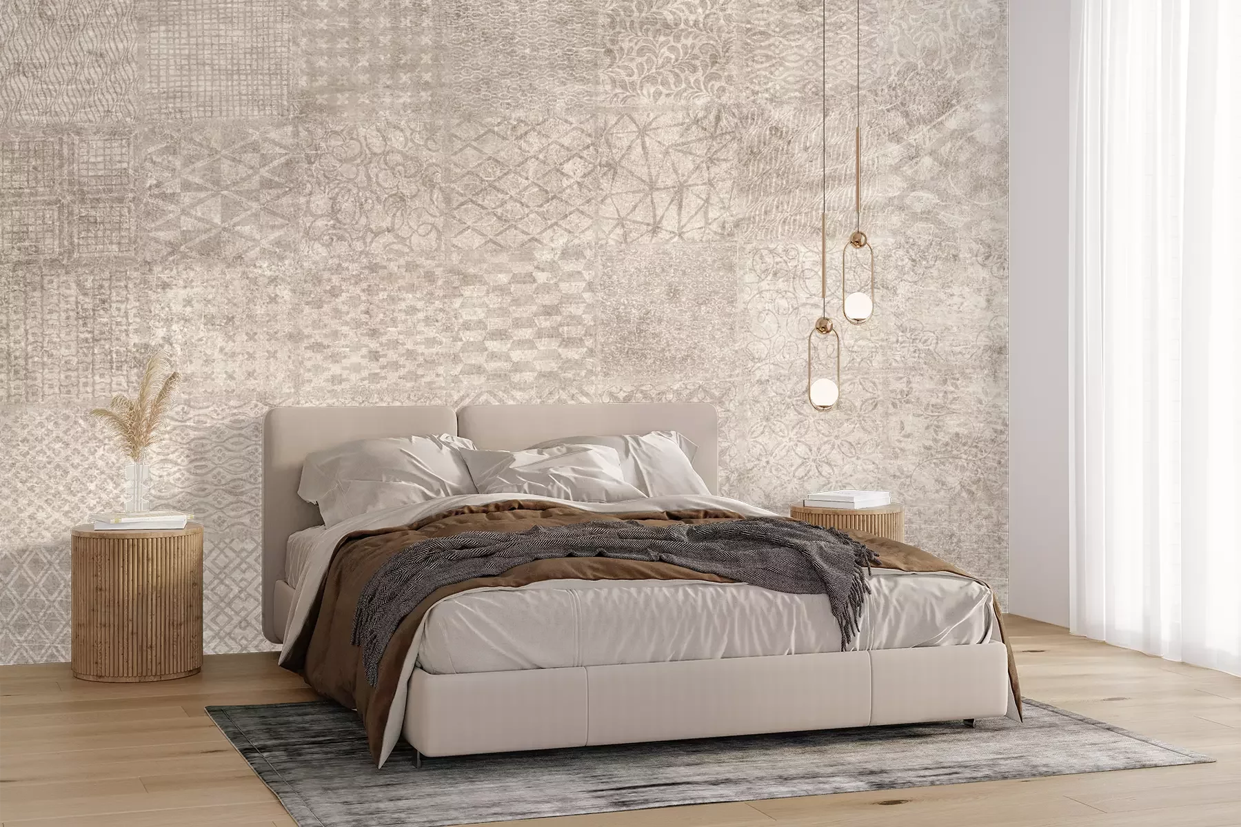Das Material Premium+ besteht aus einer strukturierten Vinyl-Oberschicht und einem Trägermaterial (Vlies) mit einer Grammatur von 255 g/m², das kleine Unebenheiten der Wand zuverlässig kaschiert. Die feine Sandstruktur verleiht der Oberfläche eine luxuriöse Haptik, während das halbmatte Finish die Tiefe der Farben betont. Das Material ist dampfdurchlässig – so kann diese Fototapete auch in Küchen und Badezimmern eingesetzt werden. Die maximale Breite einer Tapetenbahn beträgt 100 cm. Bei größeren Abmessungen besteht die Fototapete aus mehreren gleich großen Bahnen. Der Kleber wird direkt auf die Wand aufgetragen, und die Fototapete wird auf Stoß angebracht, was für einen ästhetischen Effekt ohne sichtbare Fugen sorgt. Die Oberfläche ist pflegeleicht und kann bei Bedarf sanft mit einem feuchten Tuch abgewischt werden.
