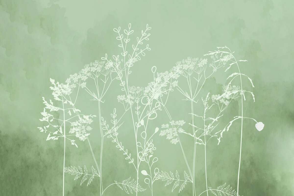 Fototapete: Zarte Gräser auf grauem Hintergrund
