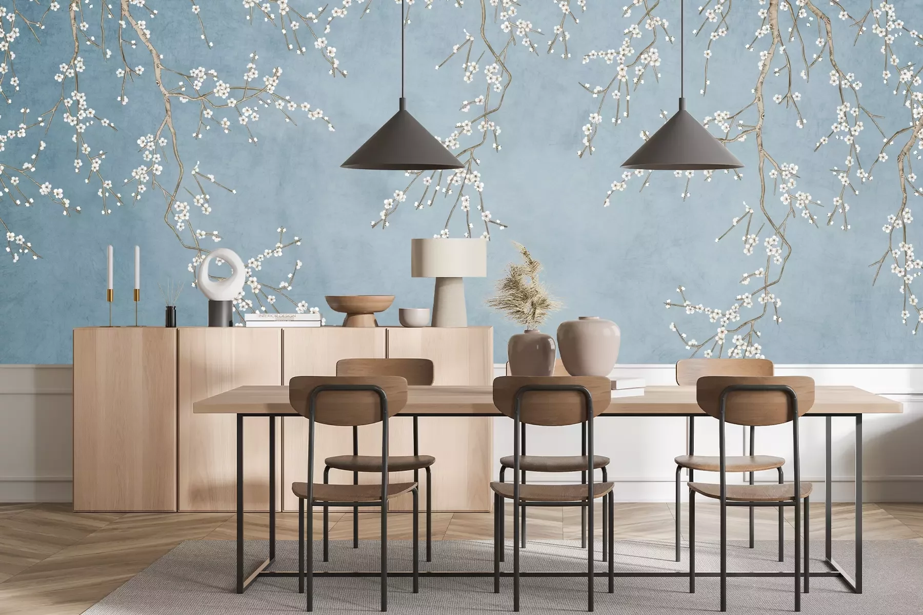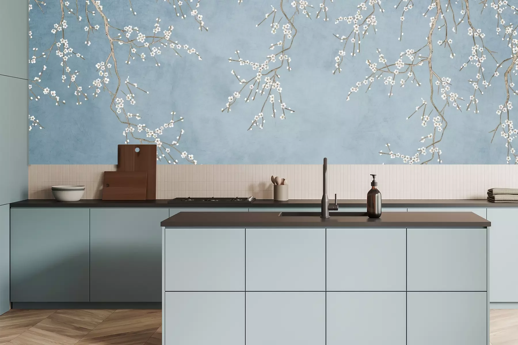 Das Material Premium+ besteht aus einer strukturierten Vinyl-Oberschicht und einem Trägermaterial (Vlies) mit einer Grammatur von 255 g/m², das kleine Unebenheiten der Wand zuverlässig kaschiert. Die feine Sandstruktur verleiht der Oberfläche eine luxuriöse Haptik, während das halbmatte Finish die Tiefe der Farben betont. Das Material ist dampfdurchlässig – so kann diese Fototapete auch in Küchen und Badezimmern eingesetzt werden. Die maximale Breite einer Tapetenbahn beträgt 100 cm. Bei größeren Abmessungen besteht die Fototapete aus mehreren gleich großen Bahnen. Der Kleber wird direkt auf die Wand aufgetragen, und die Fototapete wird auf Stoß angebracht, was für einen ästhetischen Effekt ohne sichtbare Fugen sorgt. Die Oberfläche ist pflegeleicht und kann bei Bedarf sanft mit einem feuchten Tuch abgewischt werden.