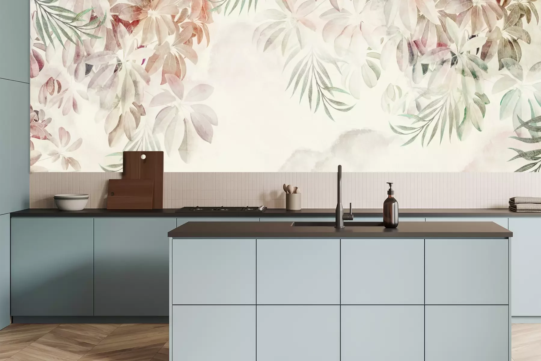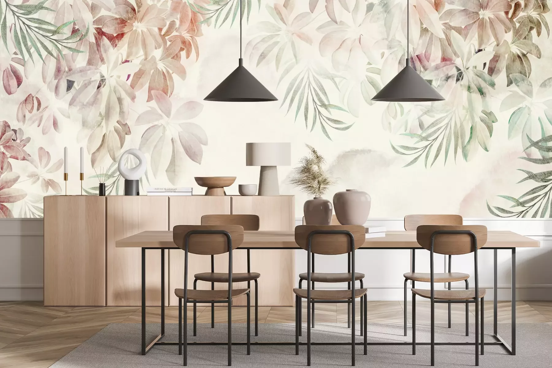 Das Material Premium+ besteht aus einer strukturierten Vinyl-Oberschicht und einem Trägermaterial (Vlies) mit einer Grammatur von 255 g/m², das kleine Unebenheiten der Wand zuverlässig kaschiert. Die feine Sandstruktur verleiht der Oberfläche eine luxuriöse Haptik, während das halbmatte Finish die Tiefe der Farben betont. Das Material ist dampfdurchlässig – so kann diese Fototapete auch in Küchen und Badezimmern eingesetzt werden. Die maximale Breite einer Tapetenbahn beträgt 100 cm. Bei größeren Abmessungen besteht die Fototapete aus mehreren gleich großen Bahnen. Der Kleber wird direkt auf die Wand aufgetragen, und die Fototapete wird auf Stoß angebracht, was für einen ästhetischen Effekt ohne sichtbare Fugen sorgt. Die Oberfläche ist pflegeleicht und kann bei Bedarf sanft mit einem feuchten Tuch abgewischt werden.