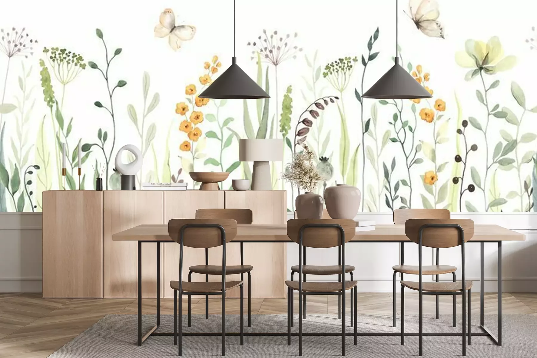 Fototapete Zarte Wiese und fliegende Schmetterlinge