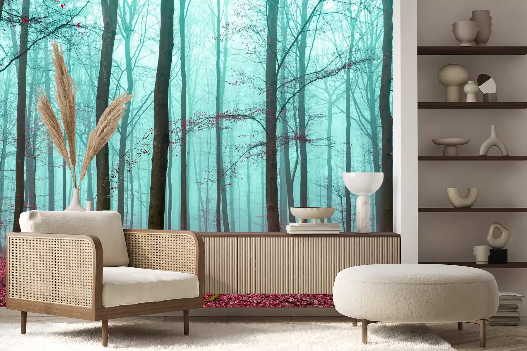 Das Material Premium+ besteht aus einer strukturierten Vinyl-Oberschicht und einem Trägermaterial (Vlies) mit einer Grammatur von 255 g/m², das kleine Unebenheiten der Wand zuverlässig kaschiert. Die feine Sandstruktur verleiht der Oberfläche eine luxuriöse Haptik, während das halbmatte Finish die Tiefe der Farben betont. Das Material ist dampfdurchlässig – so kann diese Fototapete auch in Küchen und Badezimmern eingesetzt werden. Die maximale Breite einer Tapetenbahn beträgt 100 cm. Bei größeren Abmessungen besteht die Fototapete aus mehreren gleich großen Bahnen. Der Kleber wird direkt auf die Wand aufgetragen, und die Fototapete wird auf Stoß angebracht, was für einen ästhetischen Effekt ohne sichtbare Fugen sorgt. Die Oberfläche ist pflegeleicht und kann bei Bedarf sanft mit einem feuchten Tuch abgewischt werden.