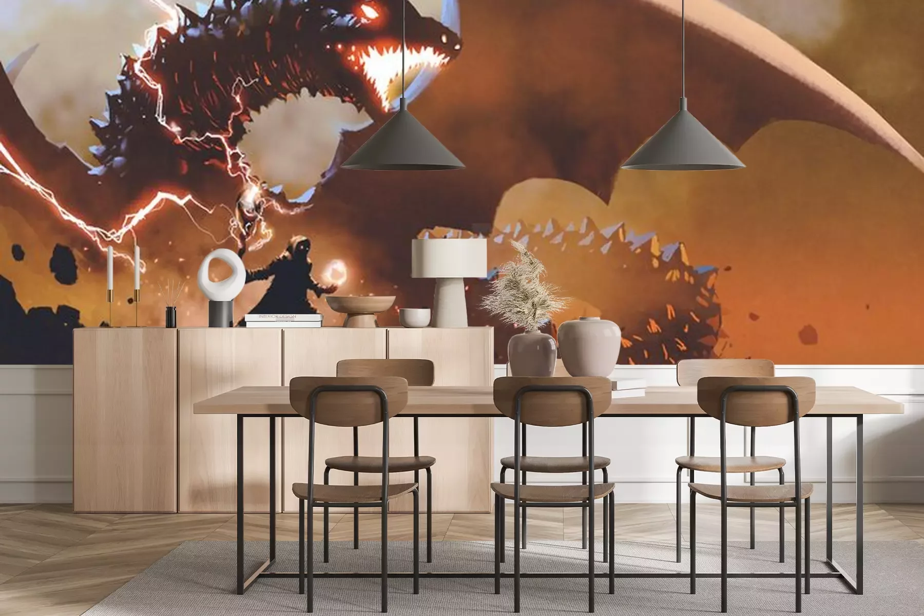 Fototapete Zauberer und schrecklicher Drache Fantasy