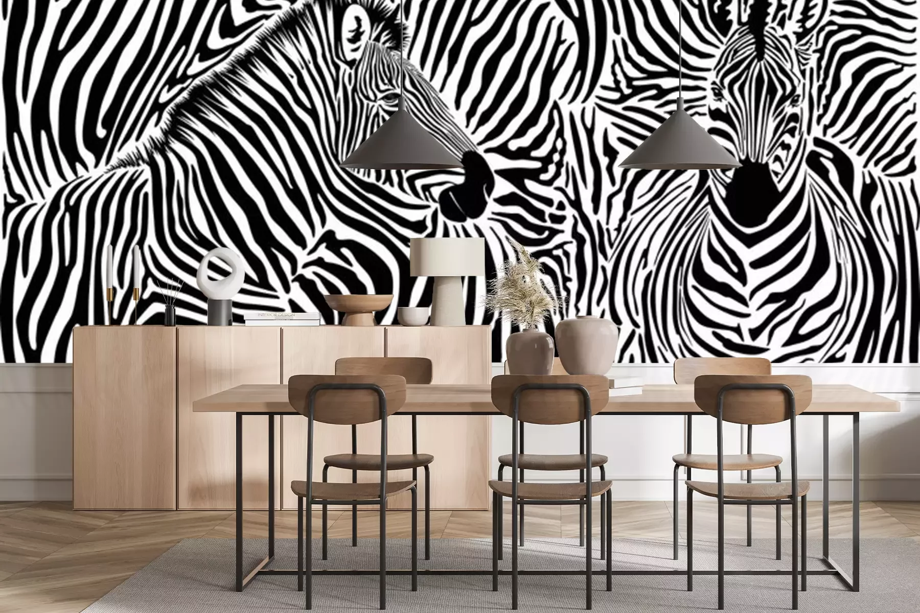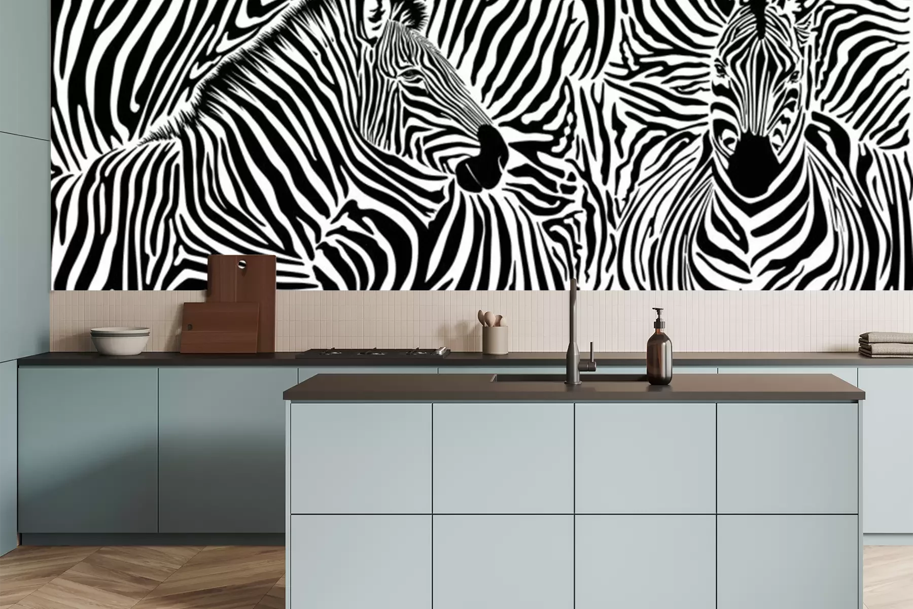 Fototapete Zebra auf gestreiftem Hintergrund