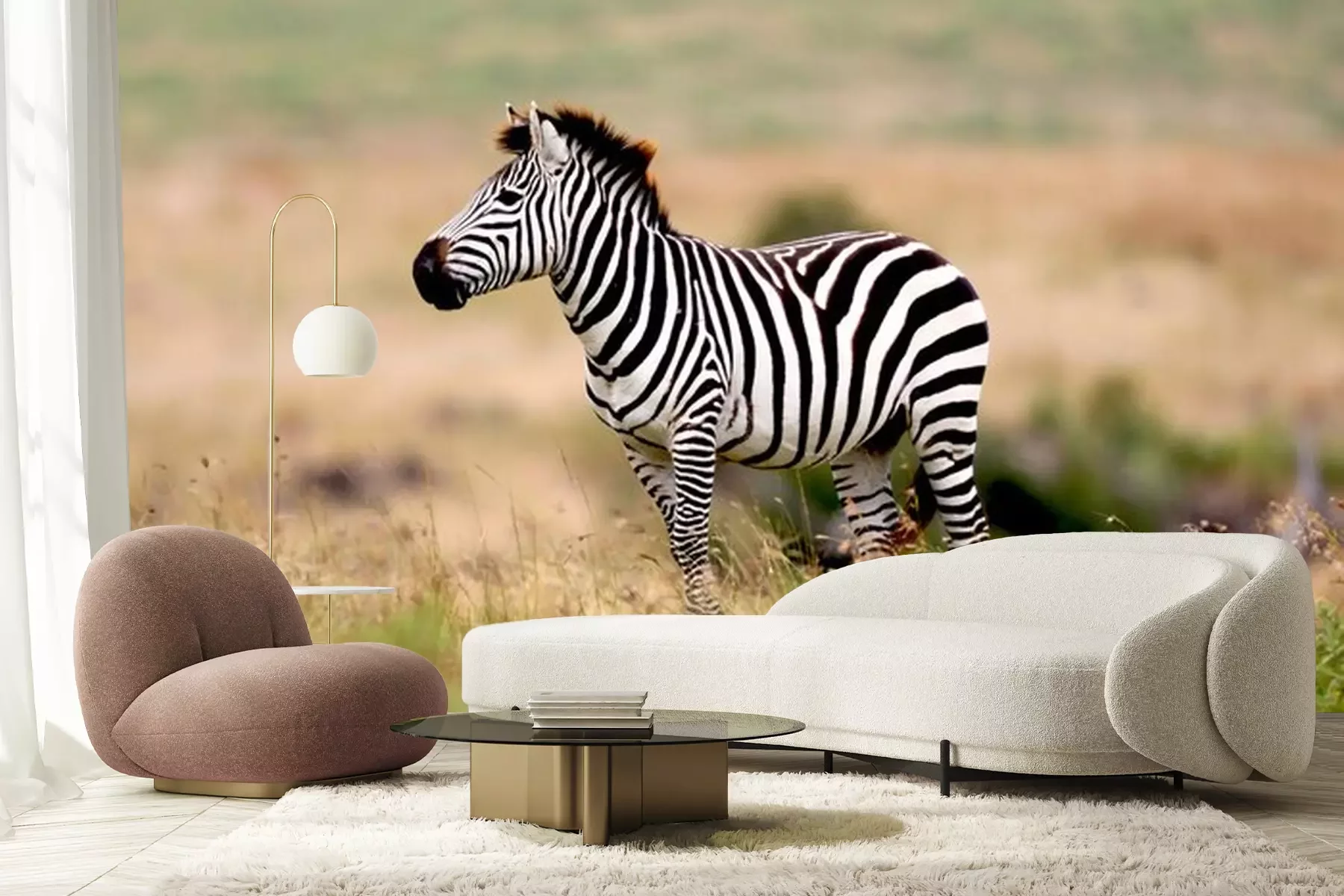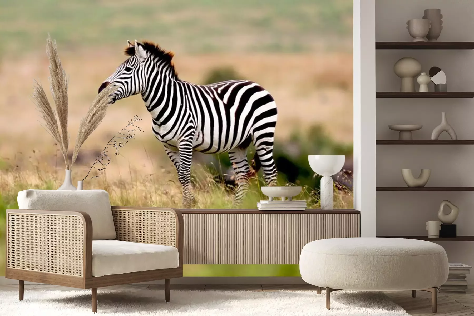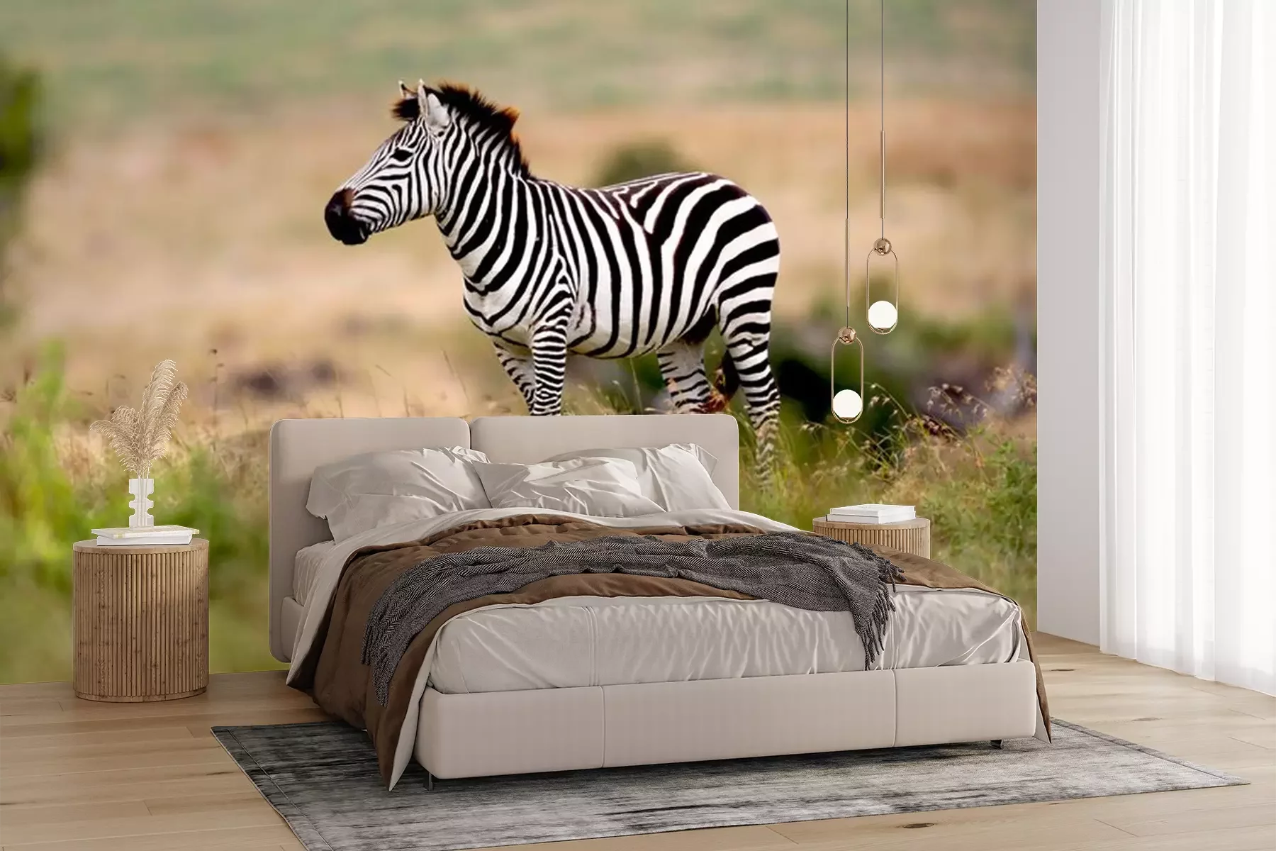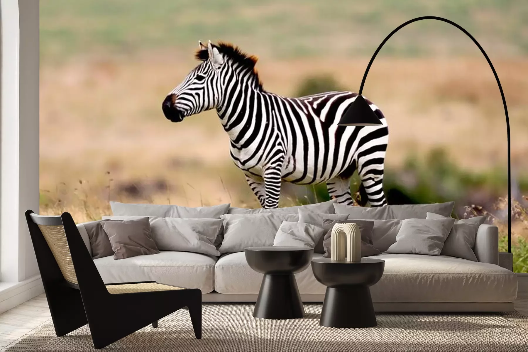 Fototapete Zebra-Profil mit Tansania im Hintergrund