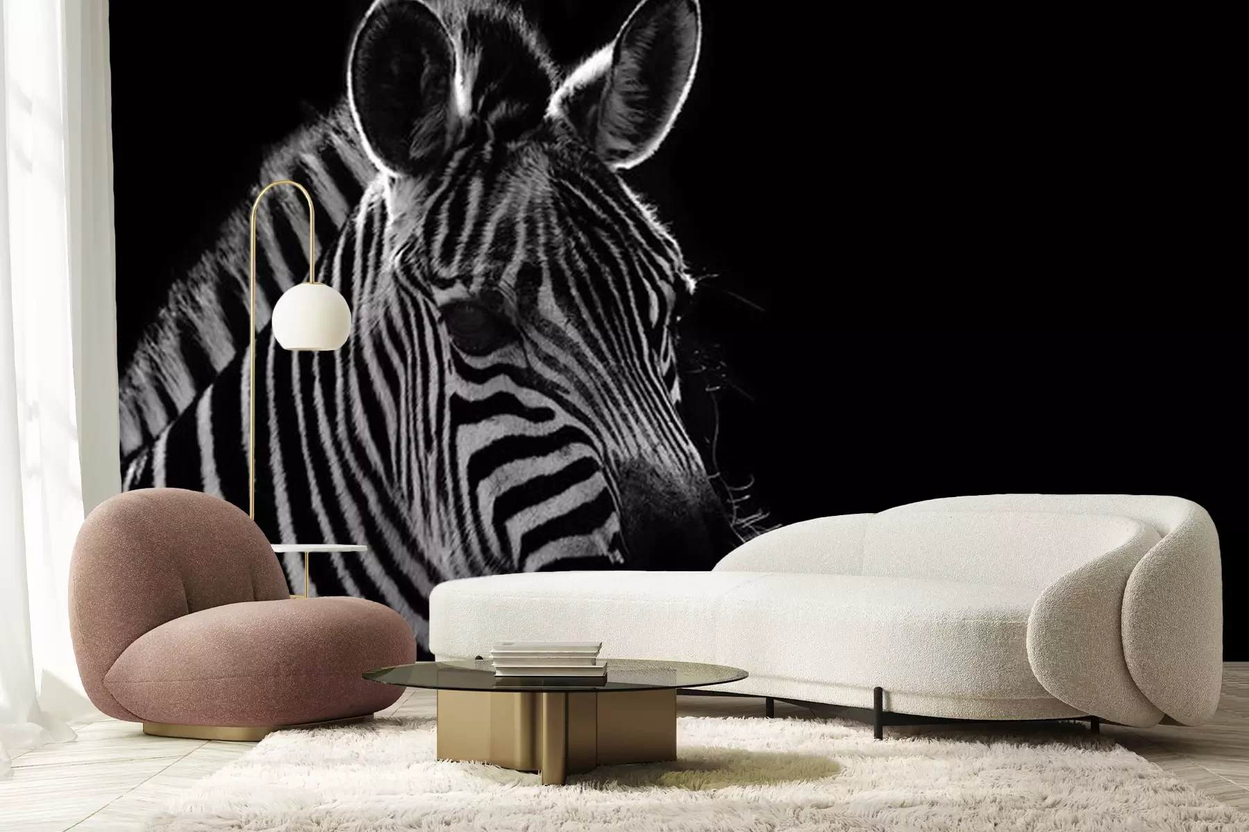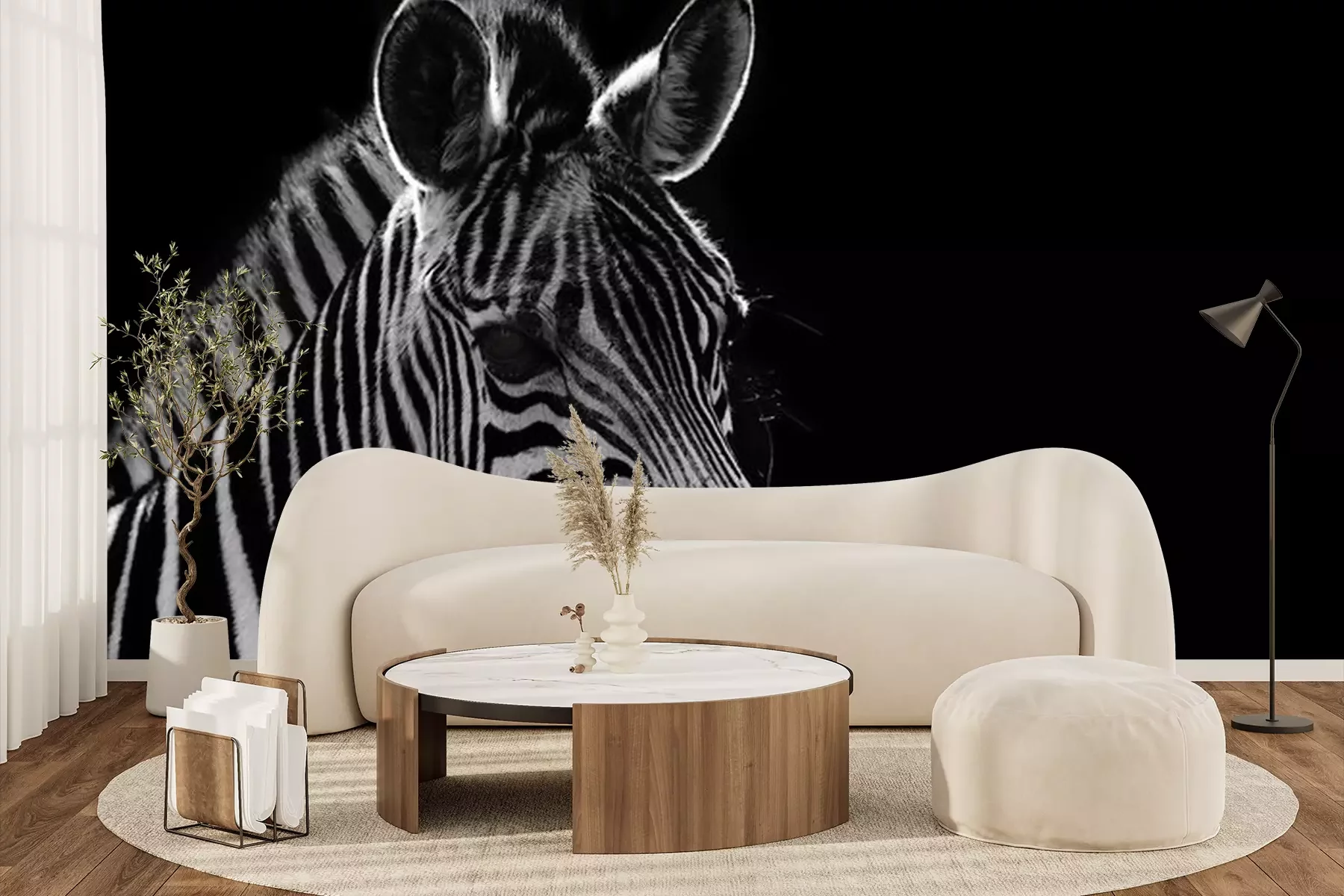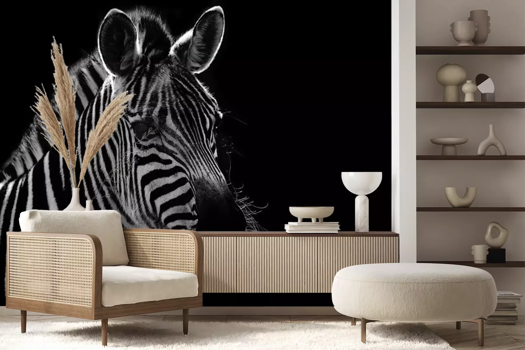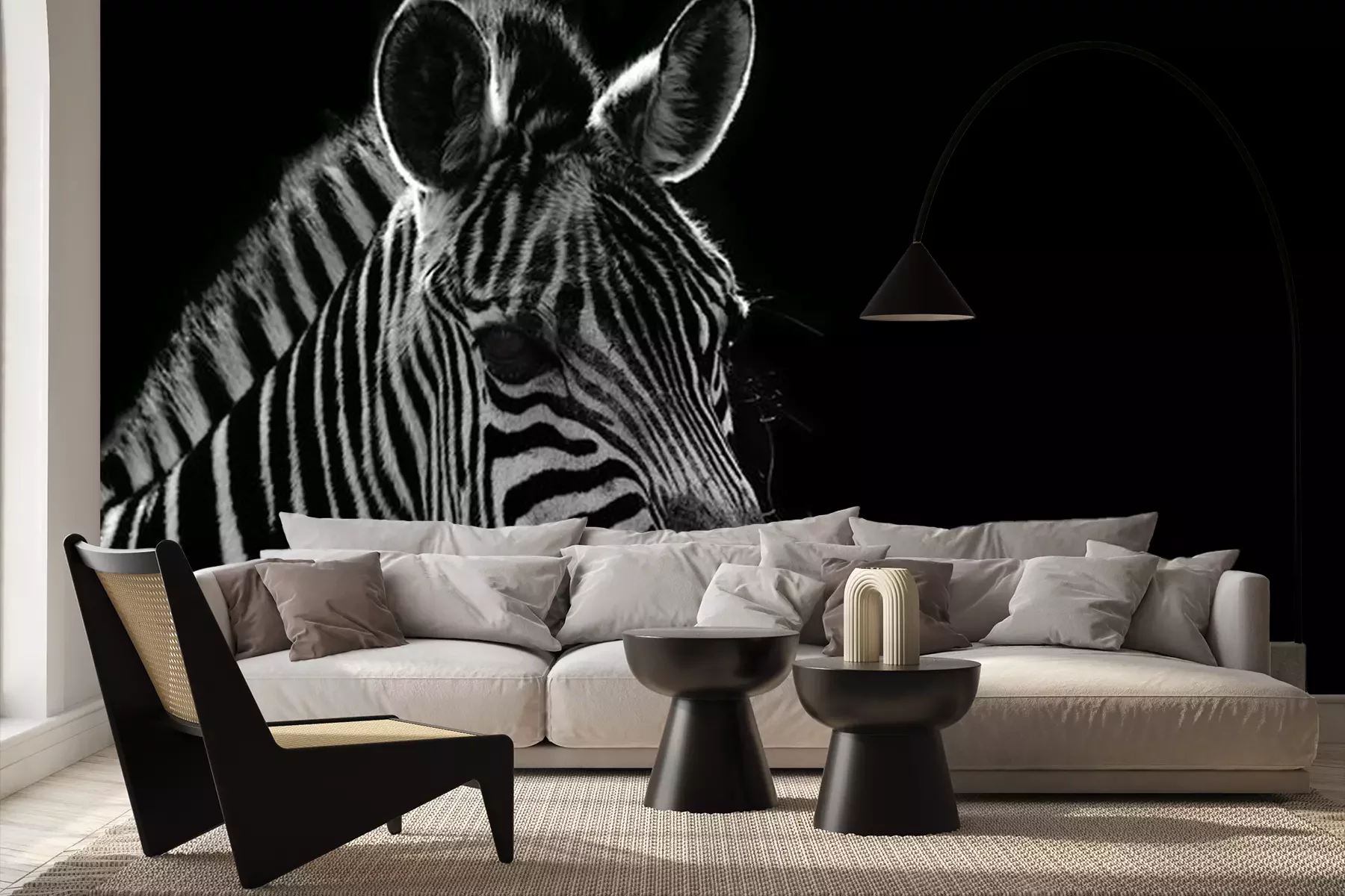 Fototapete Zebraprofil auf schwarzem Hintergrund