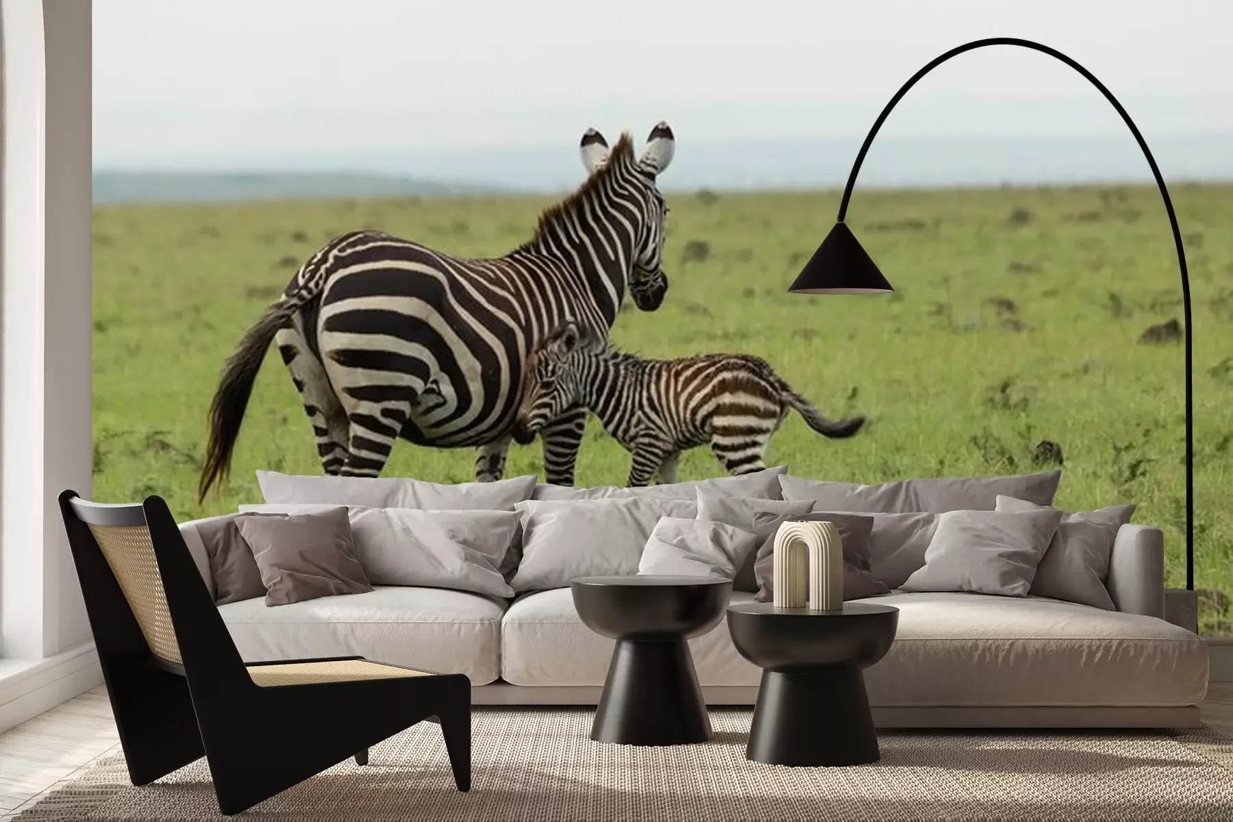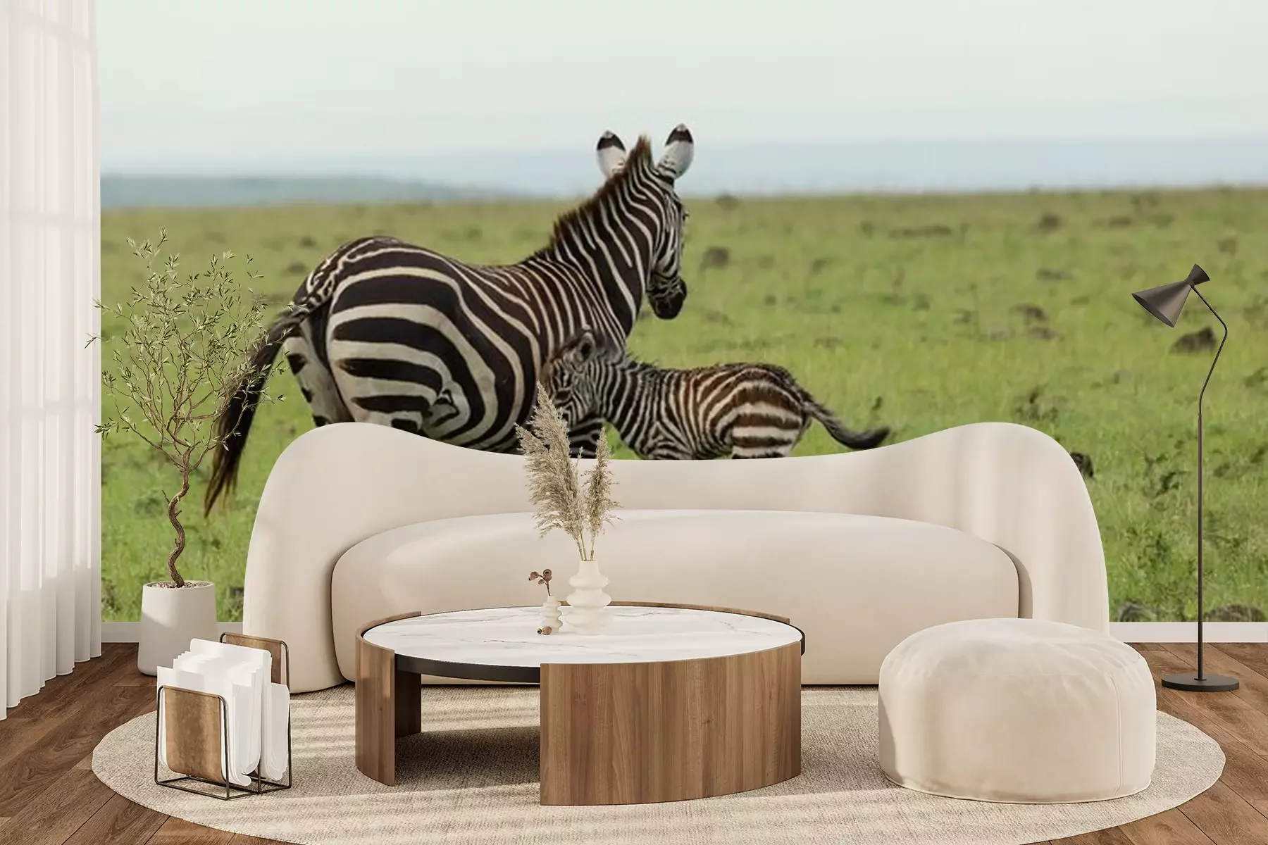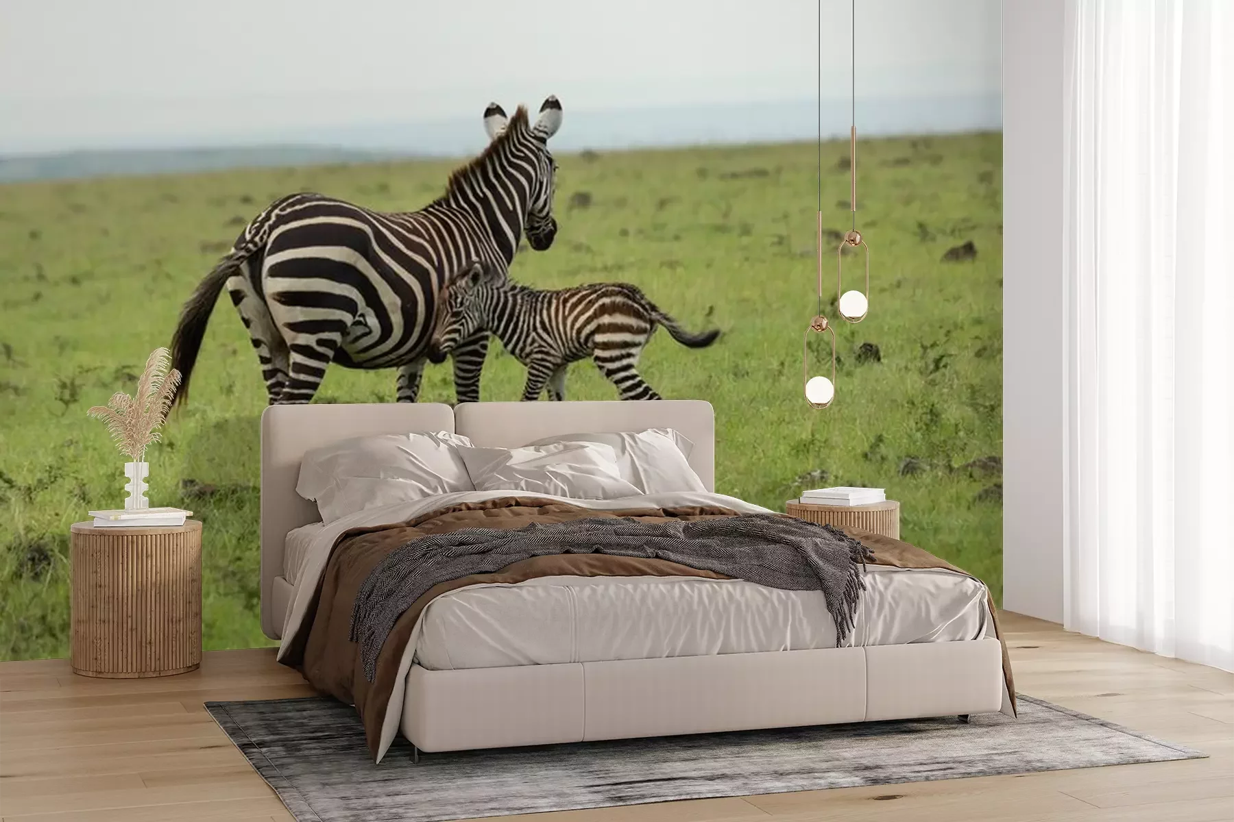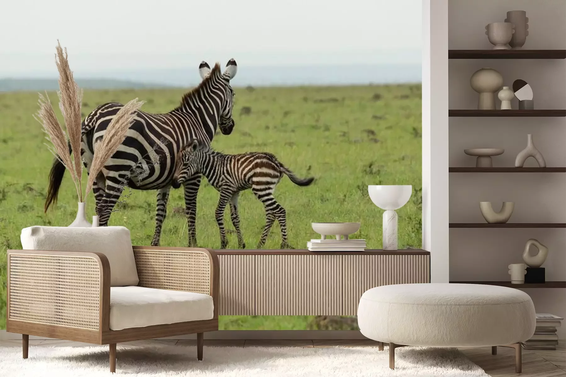 Fototapete Zebras laufen auf grünem Gras