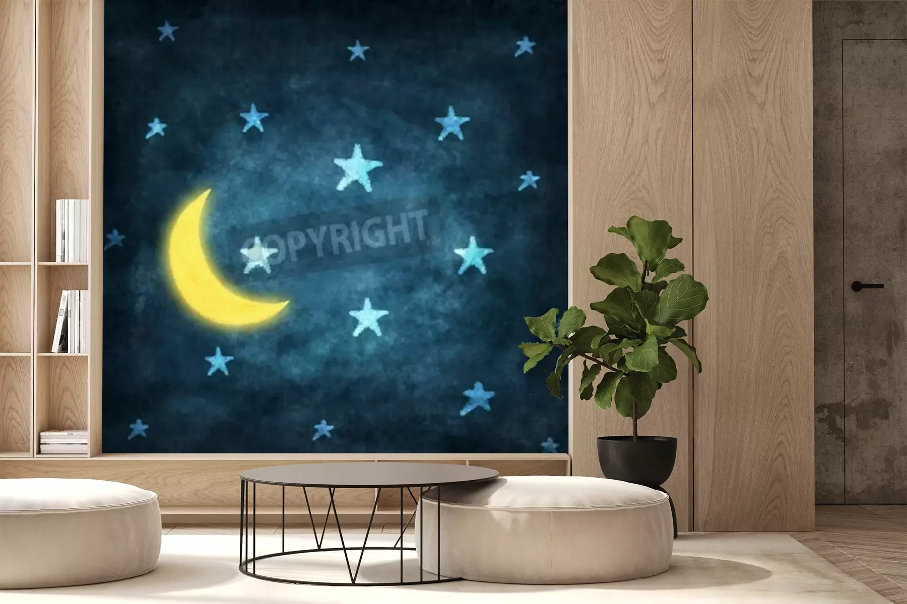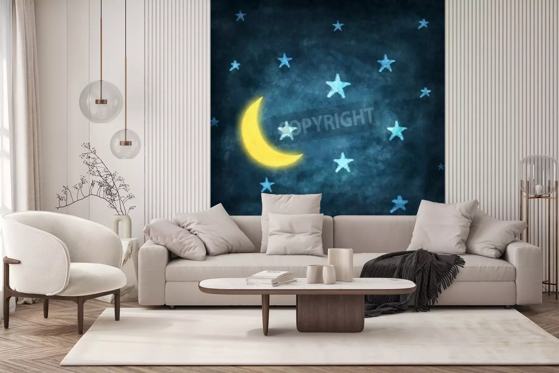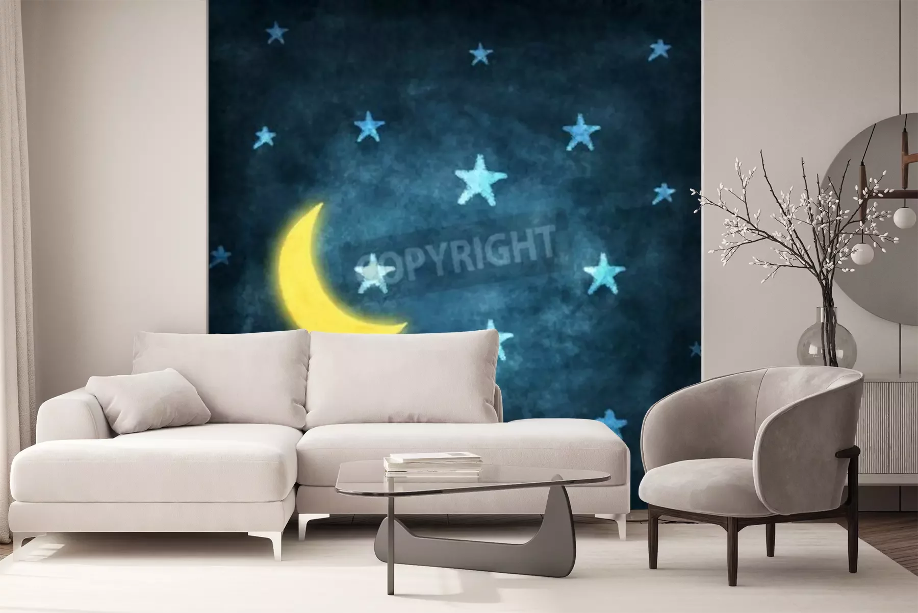 Fototapete Zeichnung mit Mond und Sternen