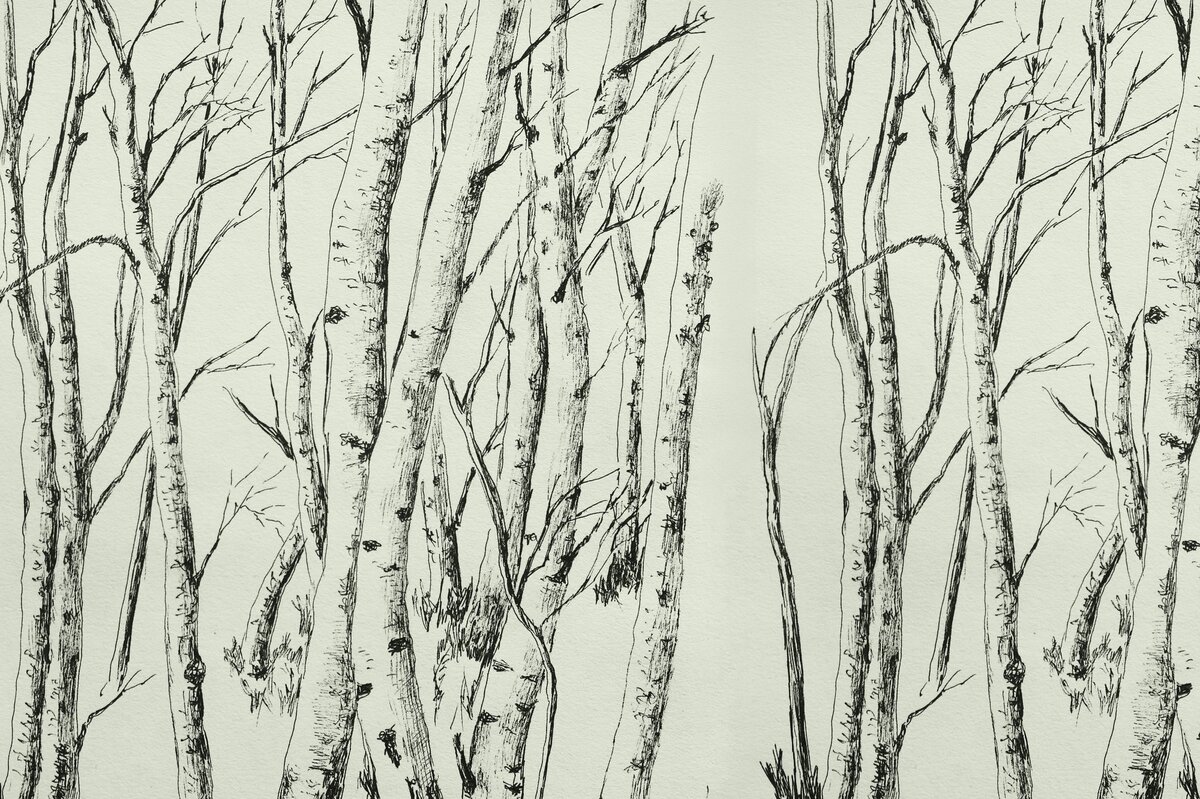 Fototapete: Zeichnung von Bäumen eines Birkenwaldes