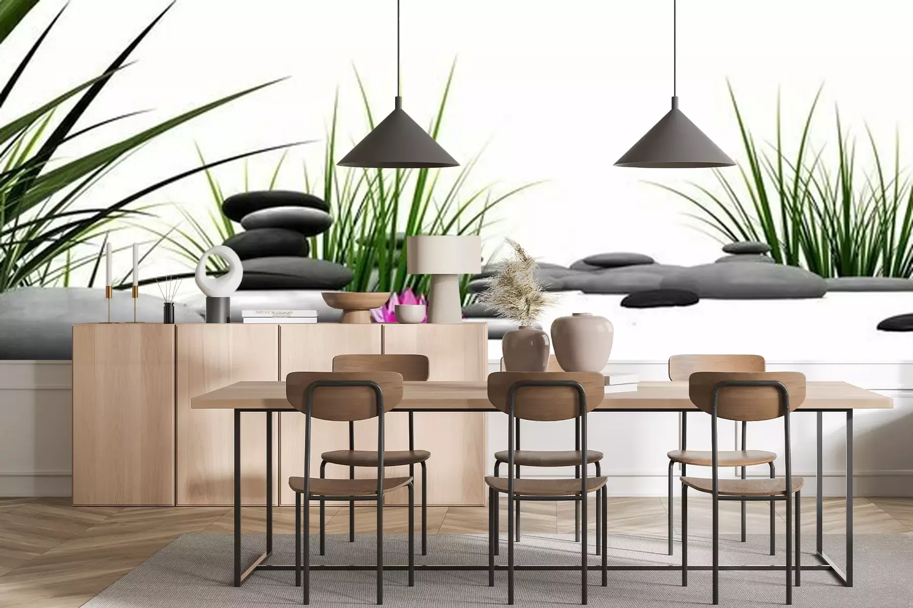 Das Material Premium+ besteht aus einer strukturierten Vinyl-Oberschicht und einem Trägermaterial (Vlies) mit einer Grammatur von 255 g/m², das kleine Unebenheiten der Wand zuverlässig kaschiert. Die feine Sandstruktur verleiht der Oberfläche eine luxuriöse Haptik, während das halbmatte Finish die Tiefe der Farben betont. Das Material ist dampfdurchlässig – so kann diese Fototapete auch in Küchen und Badezimmern eingesetzt werden. Die maximale Breite einer Tapetenbahn beträgt 100 cm. Bei größeren Abmessungen besteht die Fototapete aus mehreren gleich großen Bahnen. Der Kleber wird direkt auf die Wand aufgetragen, und die Fototapete wird auf Stoß angebracht, was für einen ästhetischen Effekt ohne sichtbare Fugen sorgt. Die Oberfläche ist pflegeleicht und kann bei Bedarf sanft mit einem feuchten Tuch abgewischt werden.