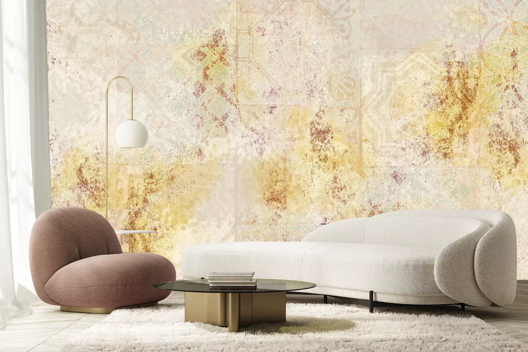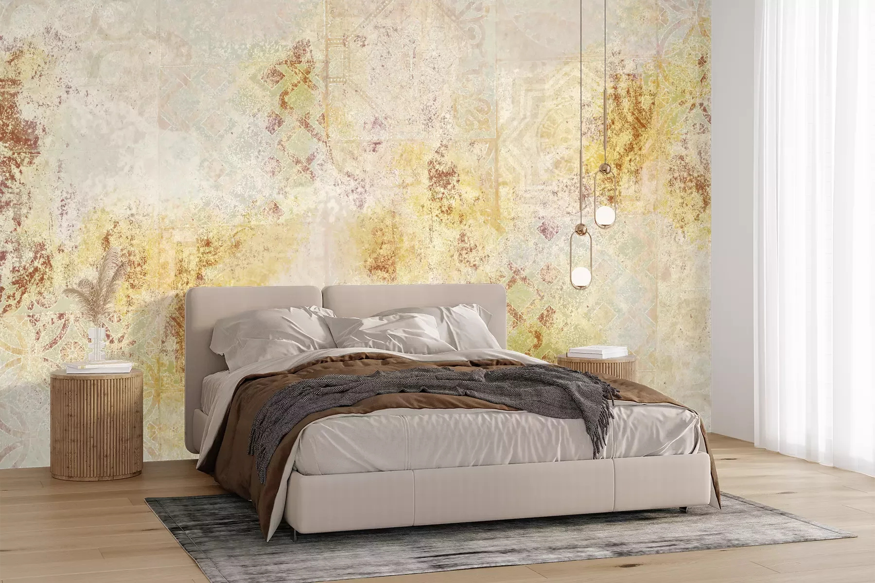 Das Material Premium+ besteht aus einer strukturierten Vinyl-Oberschicht und einem Trägermaterial (Vlies) mit einer Grammatur von 255 g/m², das kleine Unebenheiten der Wand zuverlässig kaschiert. Die feine Sandstruktur verleiht der Oberfläche eine luxuriöse Haptik, während das halbmatte Finish die Tiefe der Farben betont. Das Material ist dampfdurchlässig – so kann diese Fototapete auch in Küchen und Badezimmern eingesetzt werden. Die maximale Breite einer Tapetenbahn beträgt 100 cm. Bei größeren Abmessungen besteht die Fototapete aus mehreren gleich großen Bahnen. Der Kleber wird direkt auf die Wand aufgetragen, und die Fototapete wird auf Stoß angebracht, was für einen ästhetischen Effekt ohne sichtbare Fugen sorgt. Die Oberfläche ist pflegeleicht und kann bei Bedarf sanft mit einem feuchten Tuch abgewischt werden.