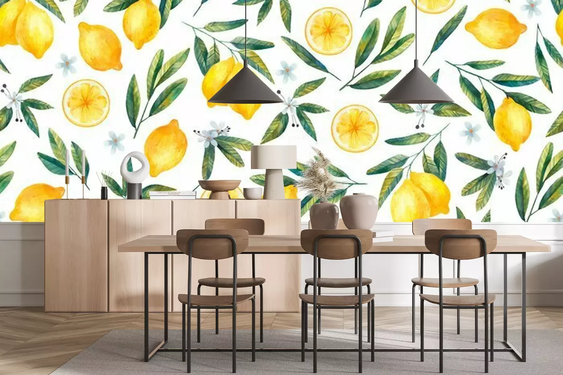 Fototapete Zitronen mit Blättern