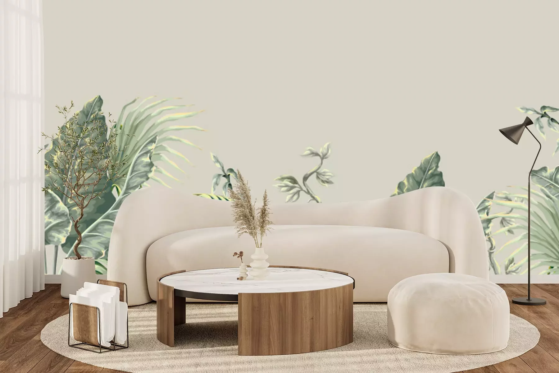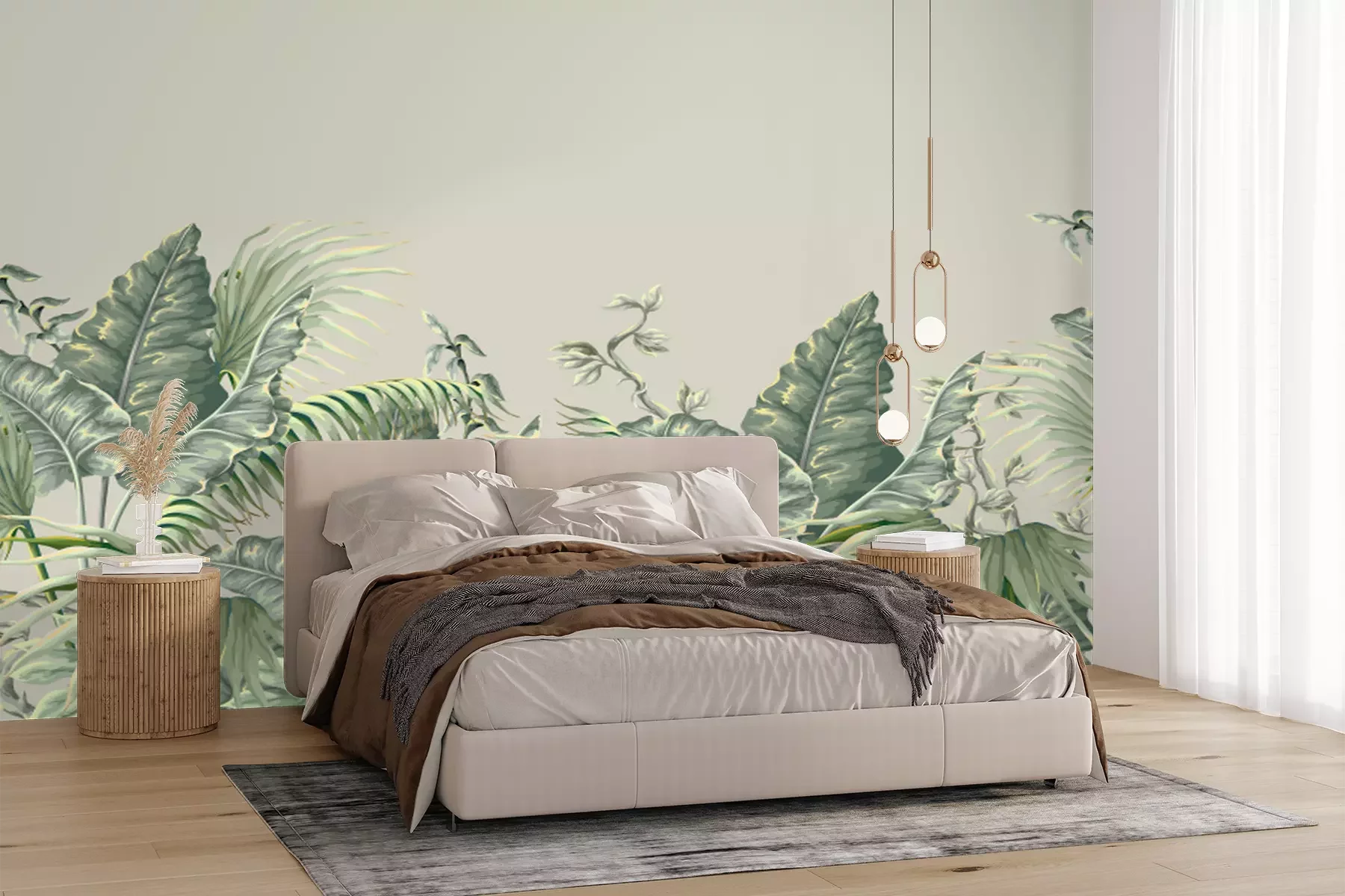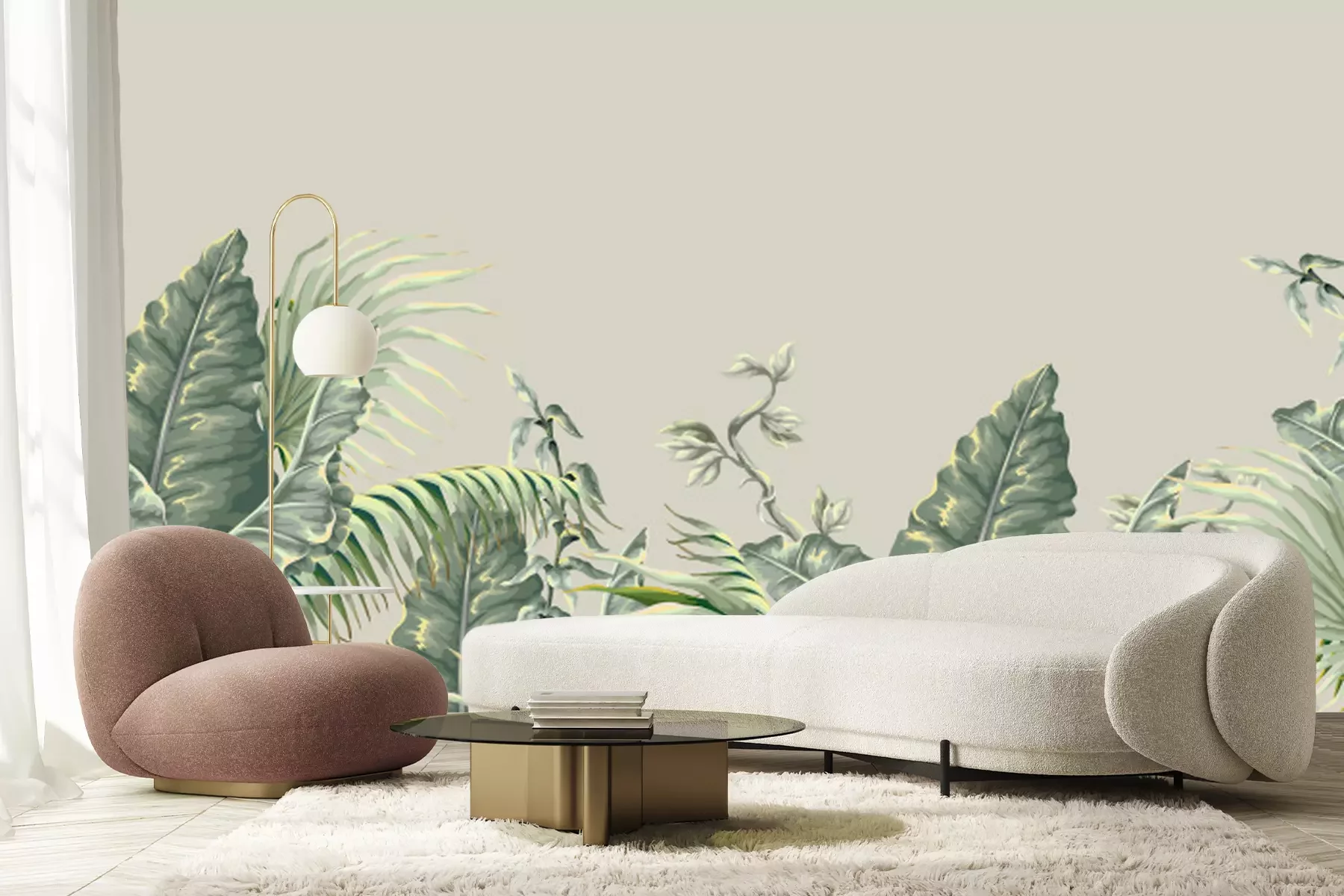 Fototapete Zusammensetzung grüner Blätter wilder exotischer Pflanzen