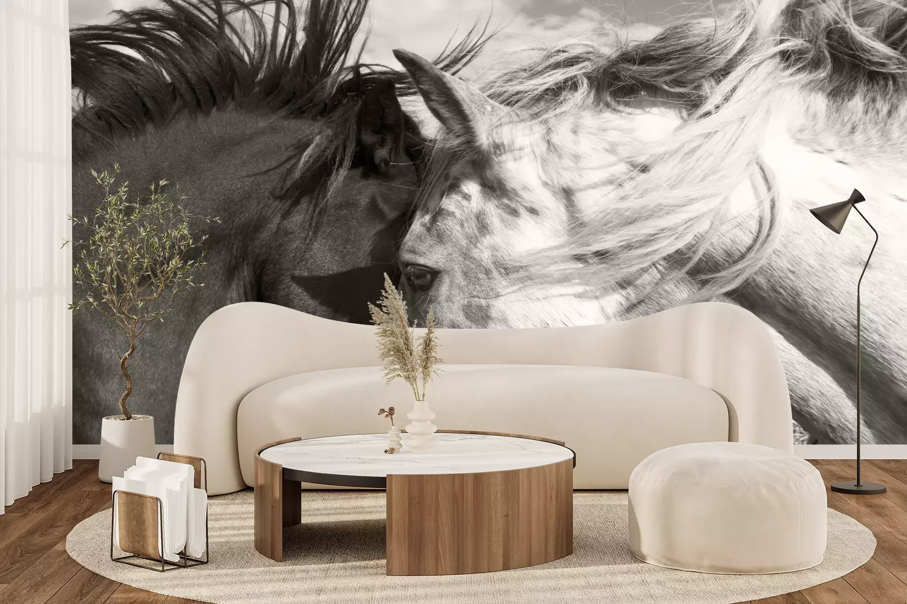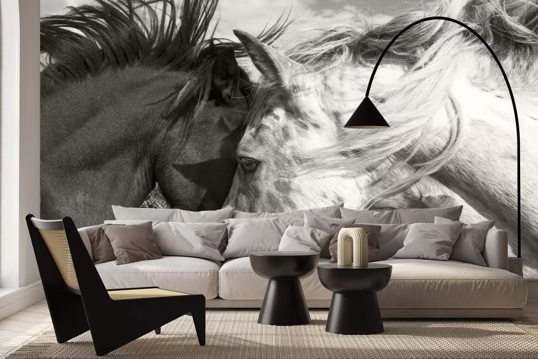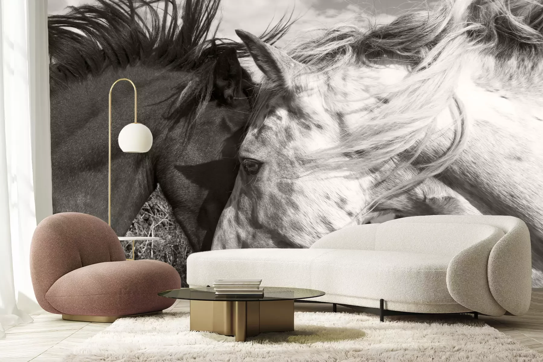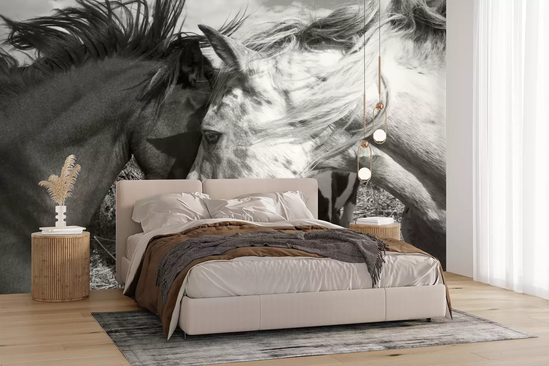 Das Material Premium+ besteht aus einer strukturierten Vinyl-Oberschicht und einem Trägermaterial (Vlies) mit einer Grammatur von 255 g/m², das kleine Unebenheiten der Wand zuverlässig kaschiert. Die feine Sandstruktur verleiht der Oberfläche eine luxuriöse Haptik, während das halbmatte Finish die Tiefe der Farben betont. Das Material ist dampfdurchlässig – so kann diese Fototapete auch in Küchen und Badezimmern eingesetzt werden. Die maximale Breite einer Tapetenbahn beträgt 100 cm. Bei größeren Abmessungen besteht die Fototapete aus mehreren gleich großen Bahnen. Der Kleber wird direkt auf die Wand aufgetragen, und die Fototapete wird auf Stoß angebracht, was für einen ästhetischen Effekt ohne sichtbare Fugen sorgt. Die Oberfläche ist pflegeleicht und kann bei Bedarf sanft mit einem feuchten Tuch abgewischt werden.