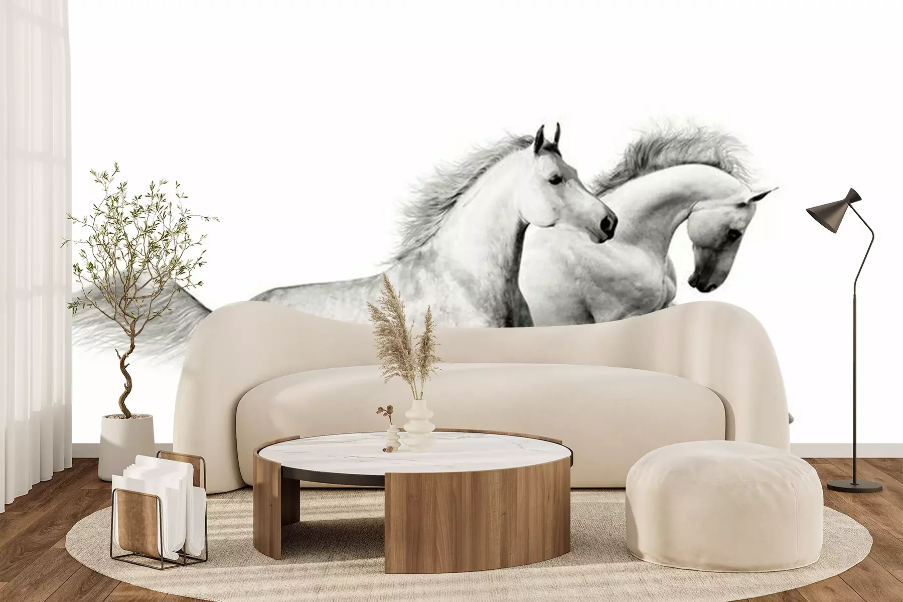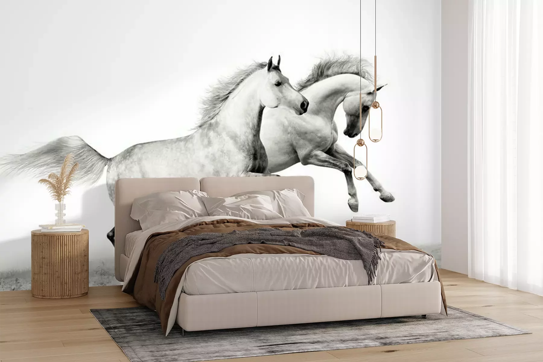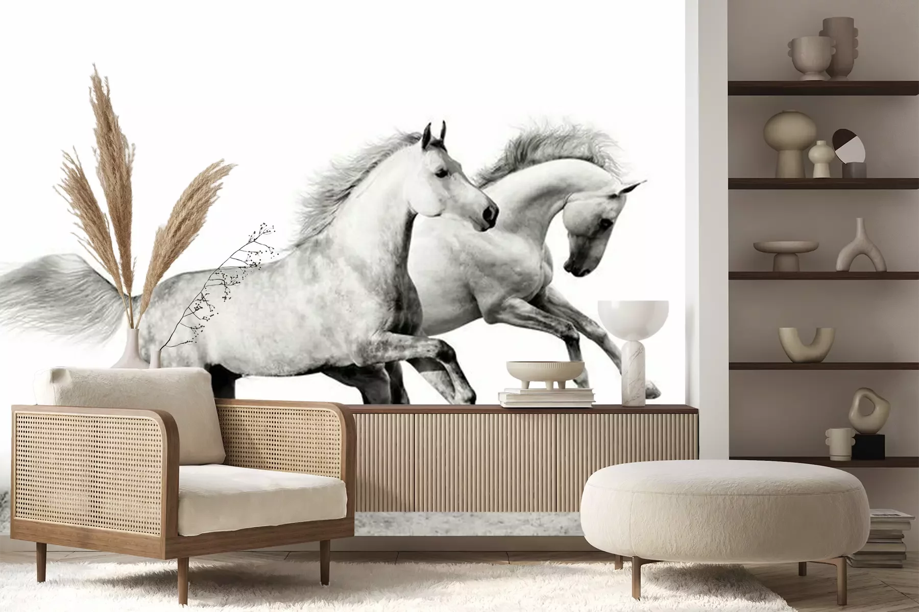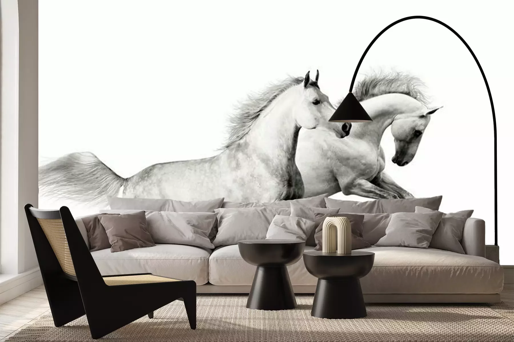 Drei weiße pferde im galoppProblemlose Lieferung durch vertrauenswürdige Spediteure