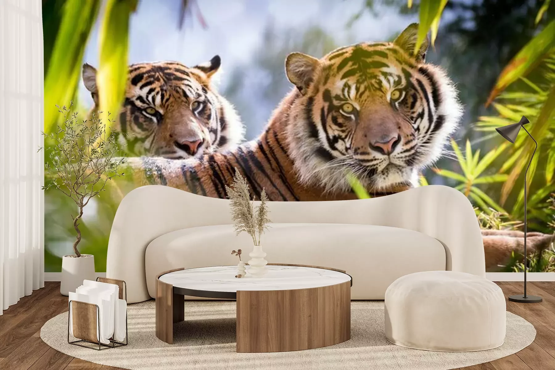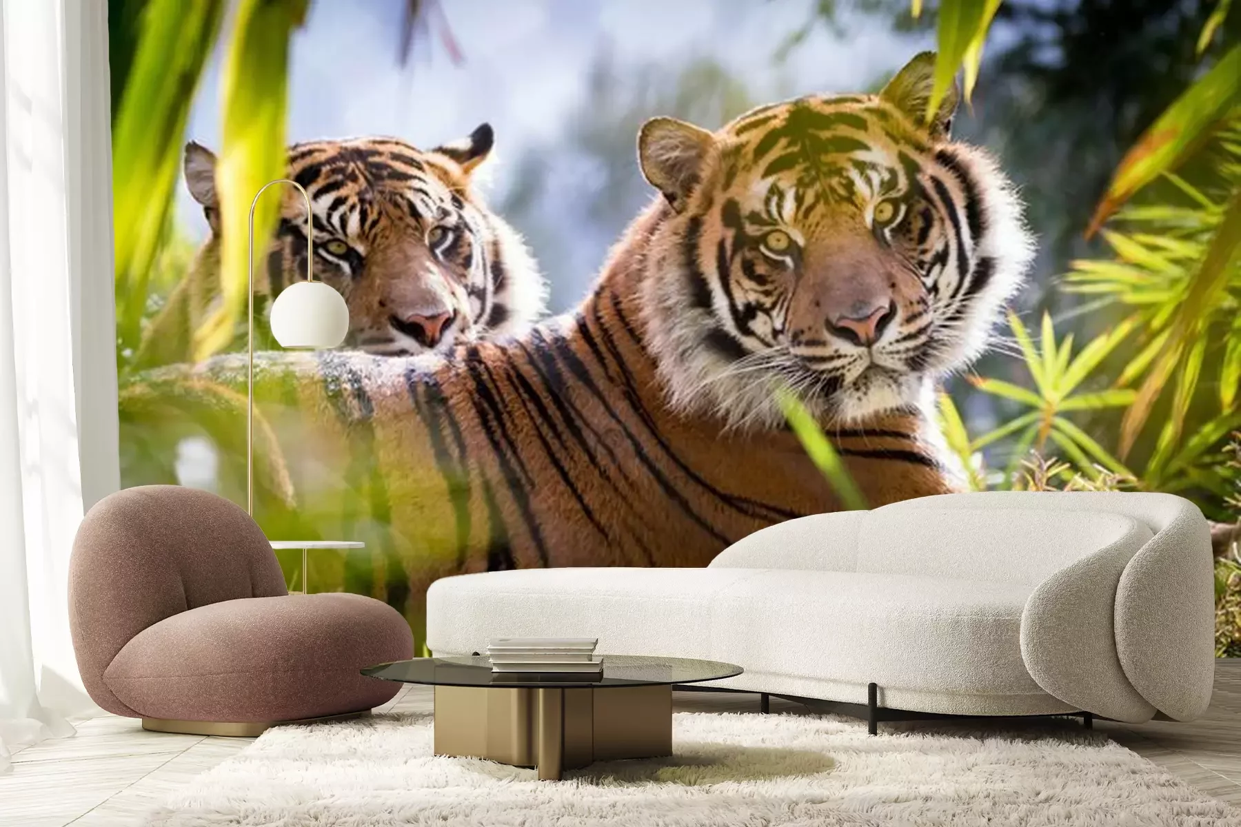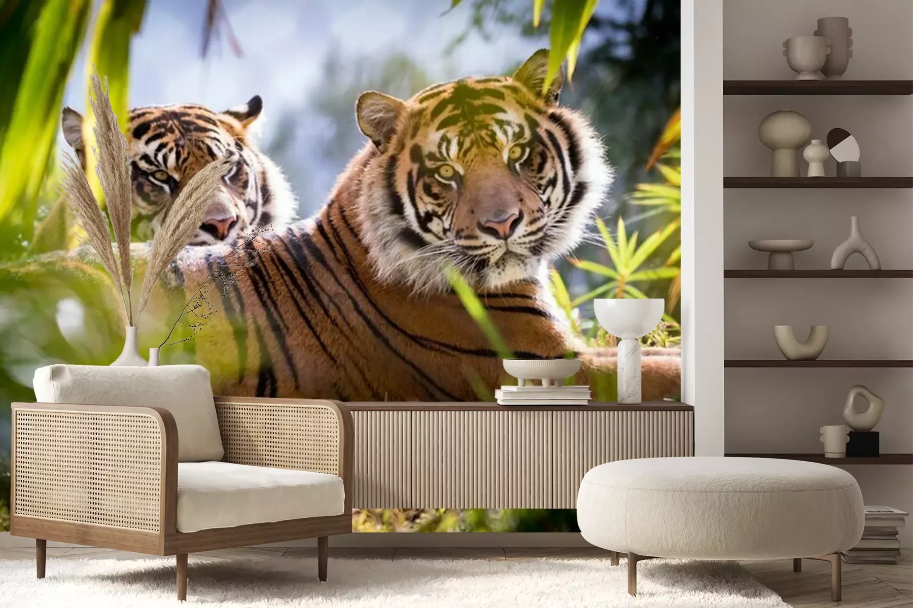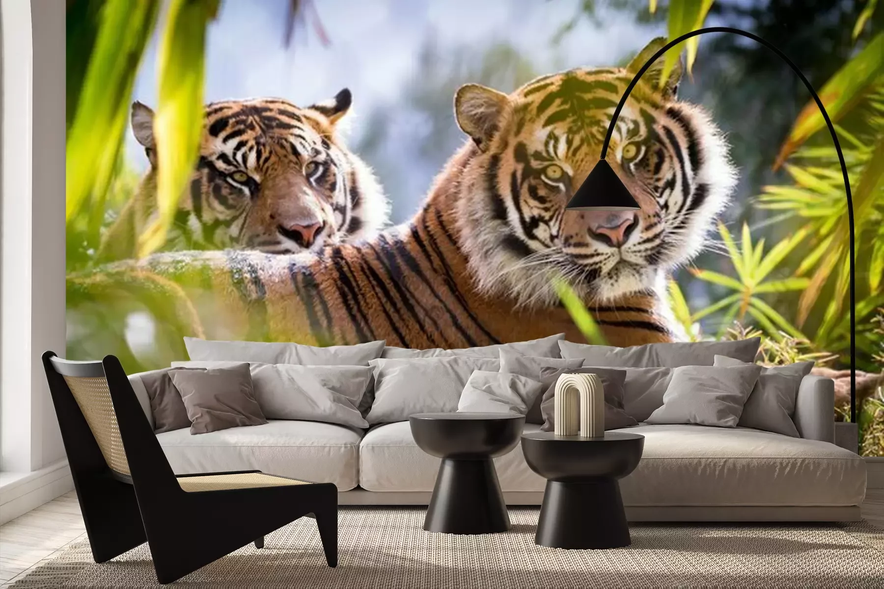 Fototapete Zwei tiger auf dem grün