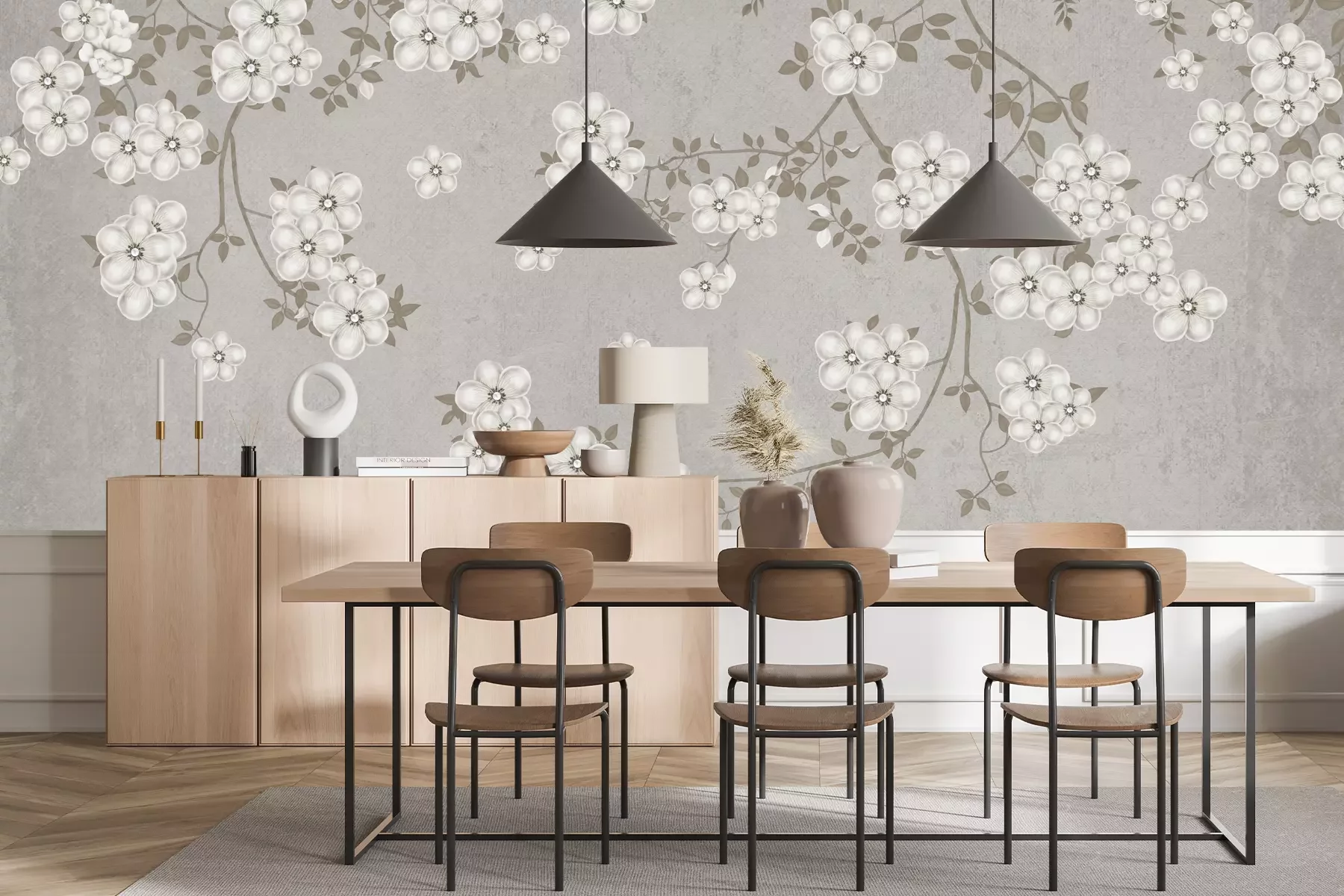 Das Material Premium+ besteht aus einer strukturierten Vinyl-Oberschicht und einem Trägermaterial (Vlies) mit einer Grammatur von 255 g/m², das kleine Unebenheiten der Wand zuverlässig kaschiert. Die feine Sandstruktur verleiht der Oberfläche eine luxuriöse Haptik, während das halbmatte Finish die Tiefe der Farben betont. Das Material ist dampfdurchlässig – so kann diese Fototapete auch in Küchen und Badezimmern eingesetzt werden. Die maximale Breite einer Tapetenbahn beträgt 100 cm. Bei größeren Abmessungen besteht die Fototapete aus mehreren gleich großen Bahnen. Der Kleber wird direkt auf die Wand aufgetragen, und die Fototapete wird auf Stoß angebracht, was für einen ästhetischen Effekt ohne sichtbare Fugen sorgt. Die Oberfläche ist pflegeleicht und kann bei Bedarf sanft mit einem feuchten Tuch abgewischt werden.