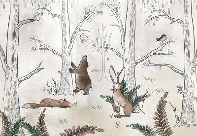 Süße Waldtiere und Vögel zwischen den BäumenFototapete