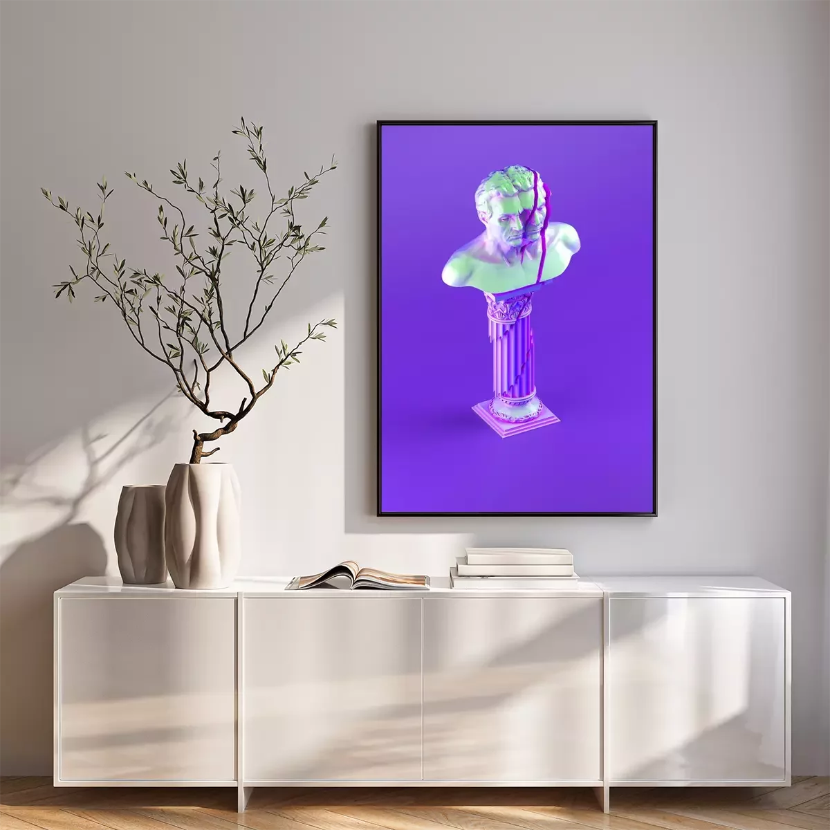 Poster 3d gebrochene Büste auf lila Hintergrund
