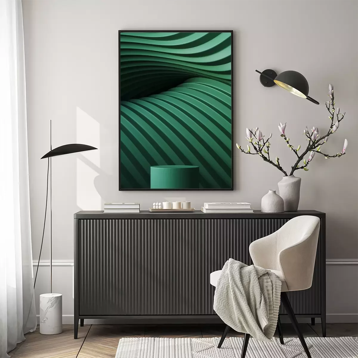 Poster 3d monochromes Muster in grüner Farbe