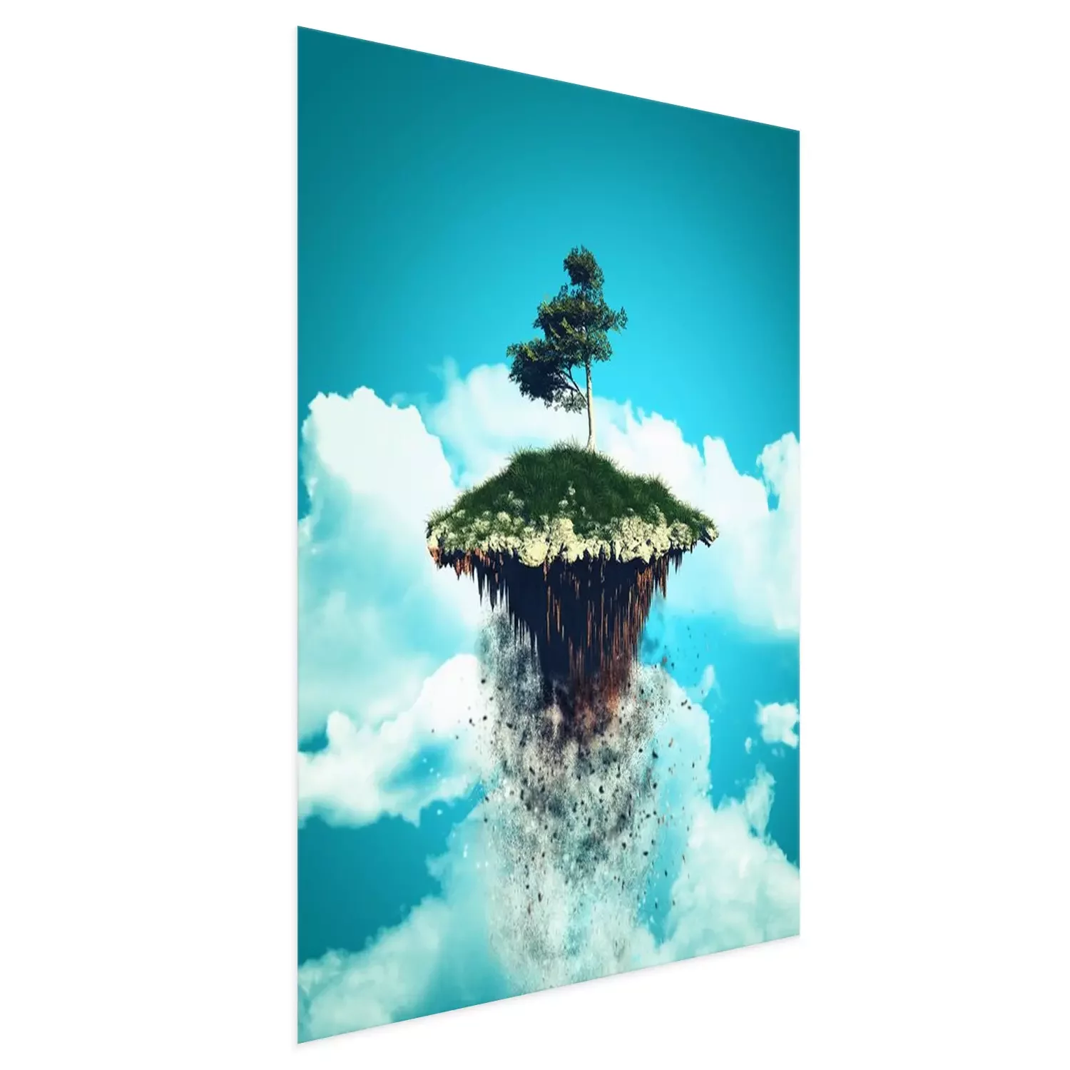 Poster 3D schwimmende Insel explodieren in den Himmel