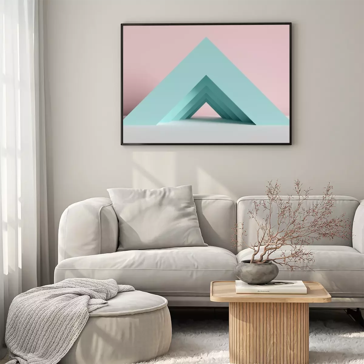 Poster 3d Tunnel aus türkisfarbenen Dreiecken