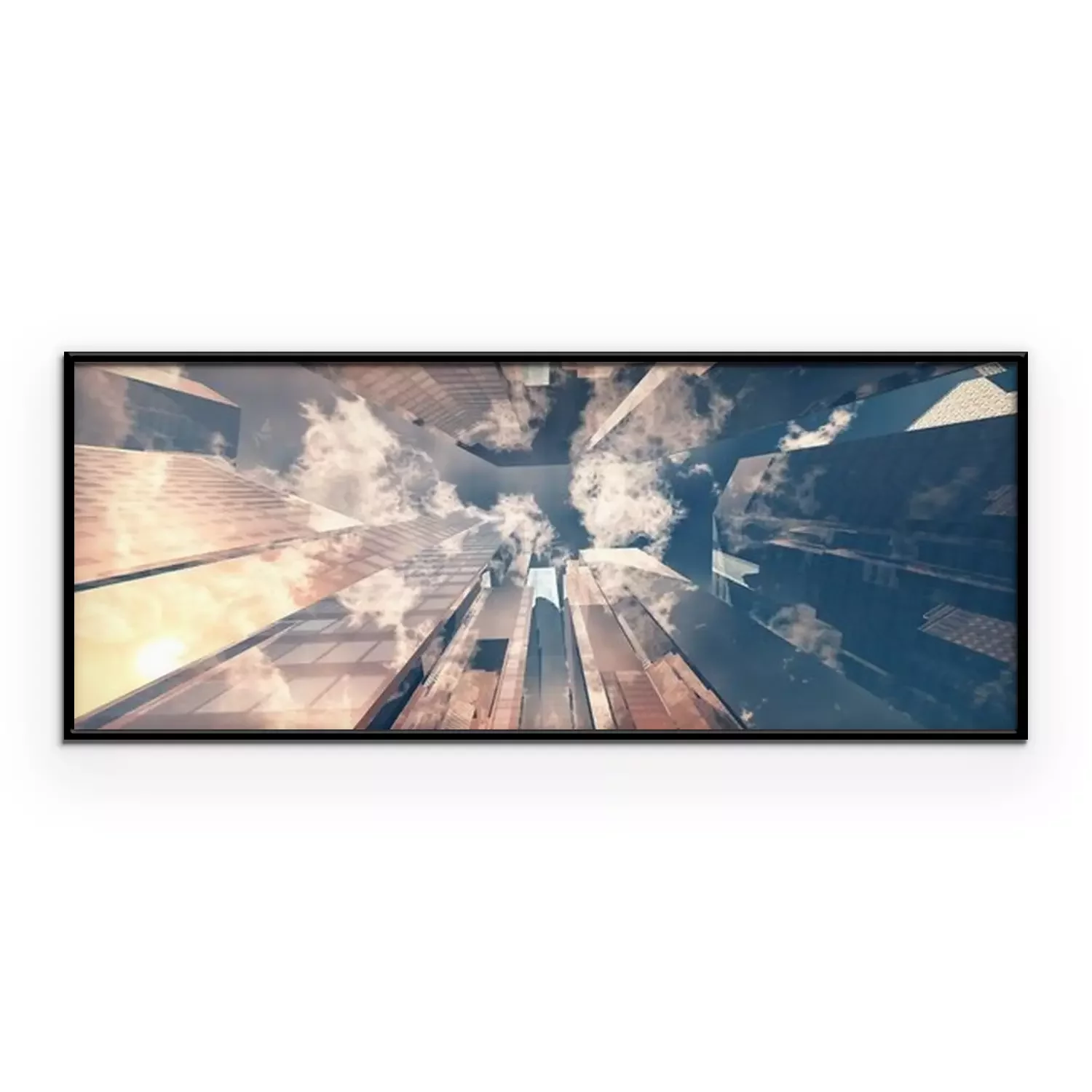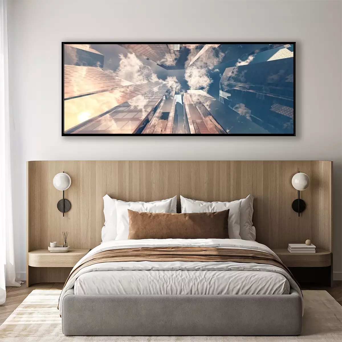 Poster 3d verglaste Wolkenkratzer mit Wolkenspiegelung