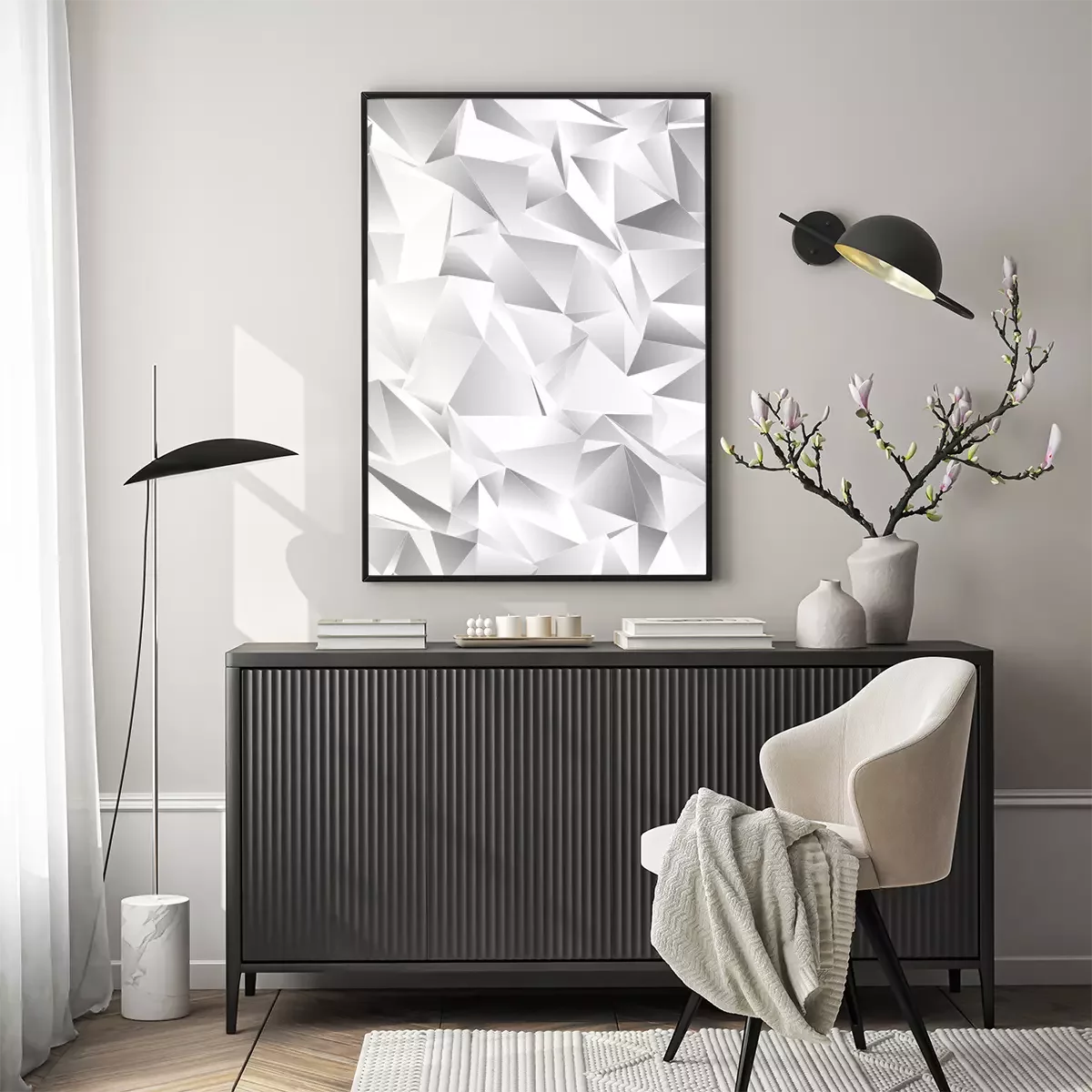 Poster 3D-Vielecke in Weiß