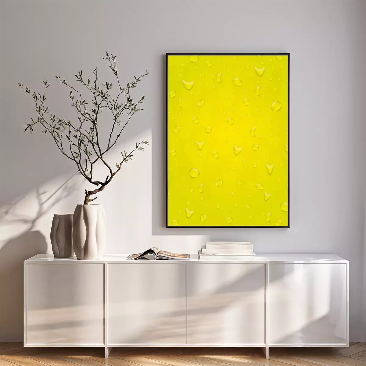 Poster: 3d-Wassertropfen auf gelbem Hintergrund