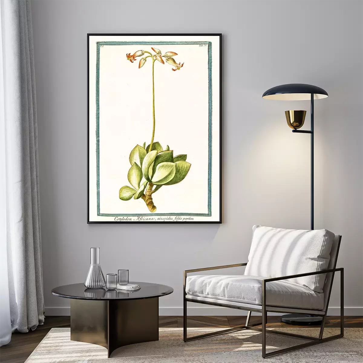 Poster: Abbildung einer exotischen Pflanze in einem grünen Rahmen