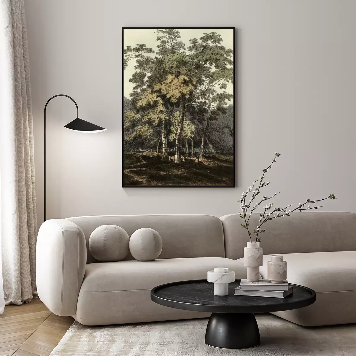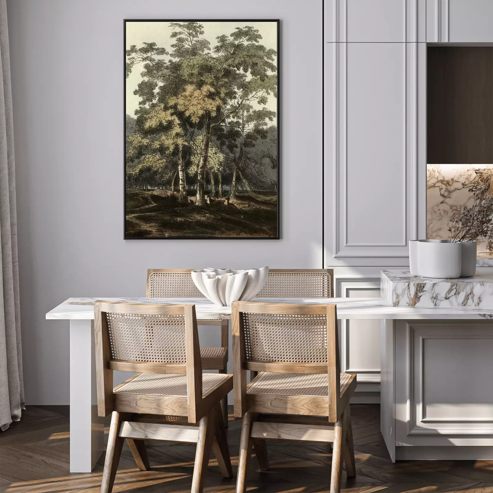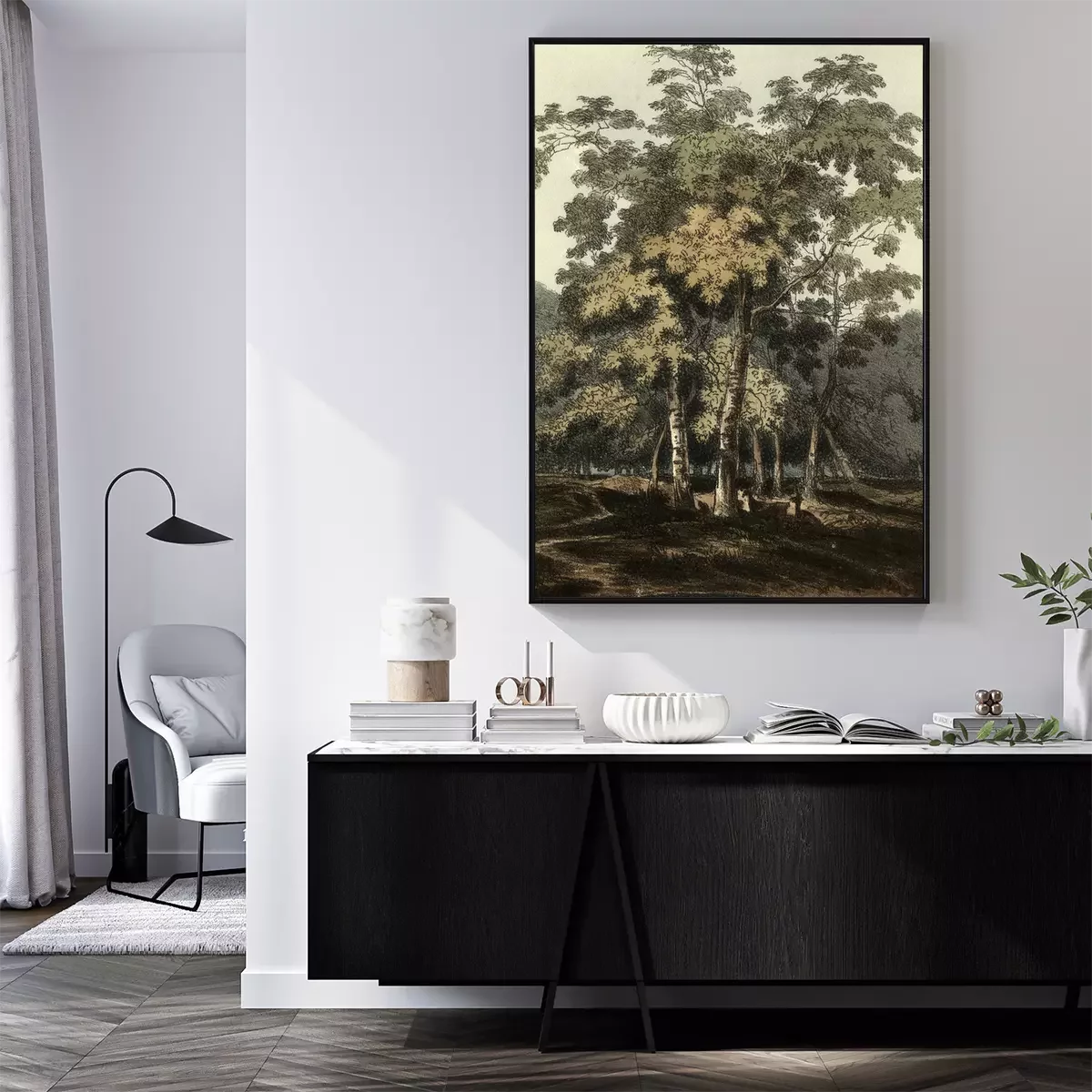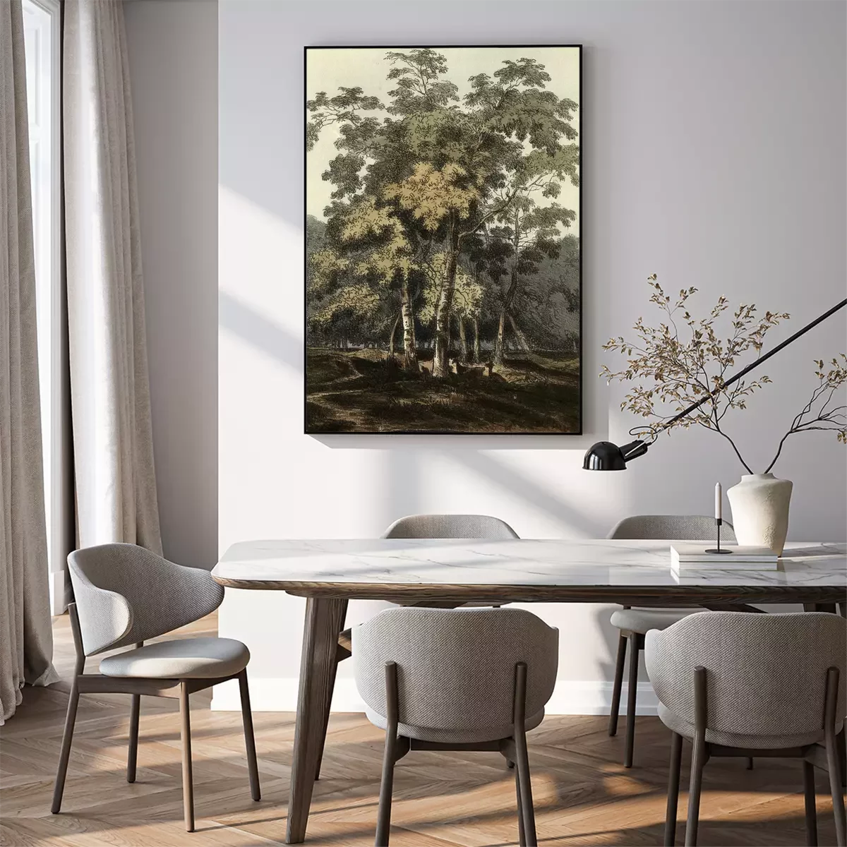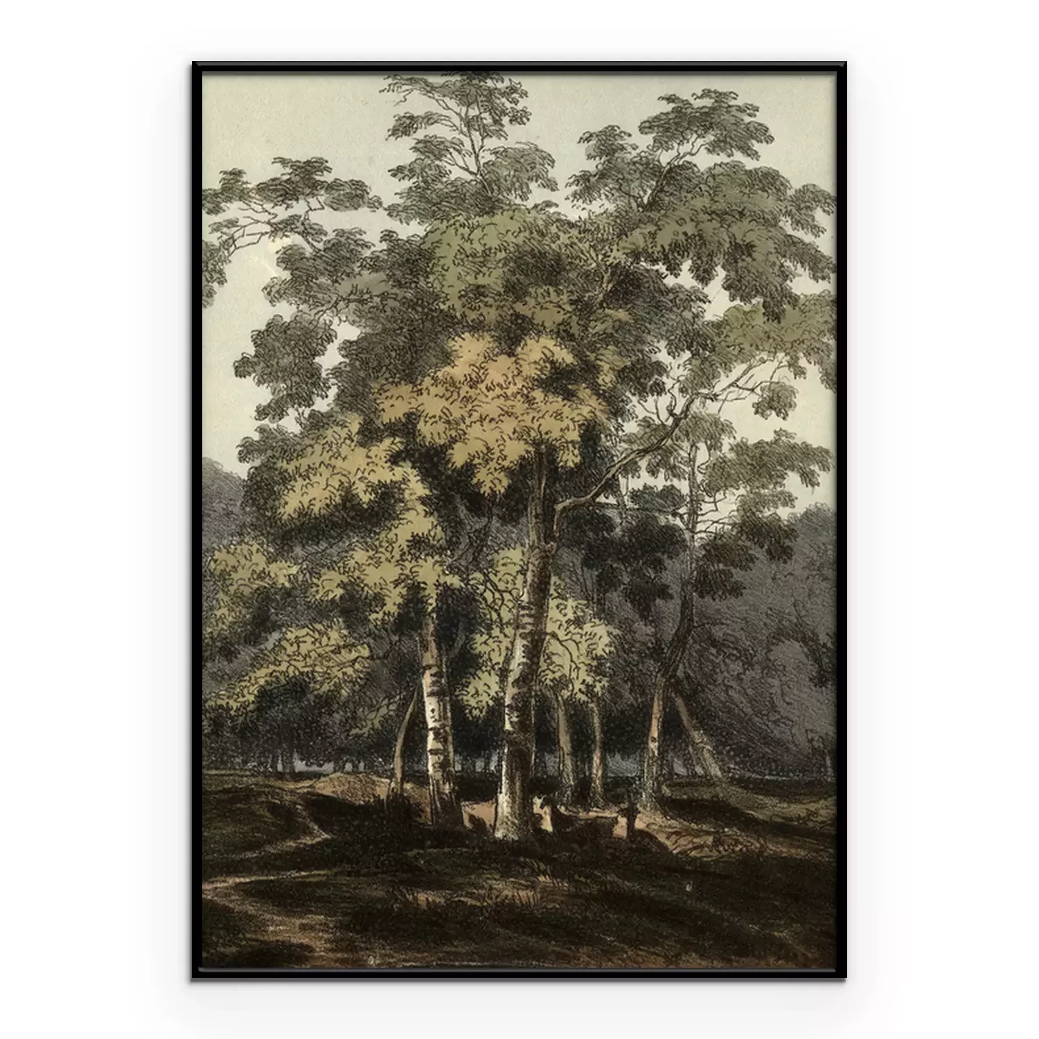 Poster: Abbildung mit Birken in Retro-Ästhetik