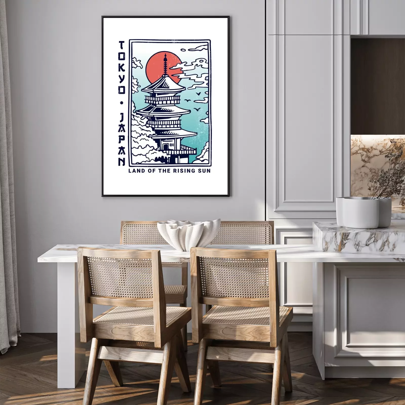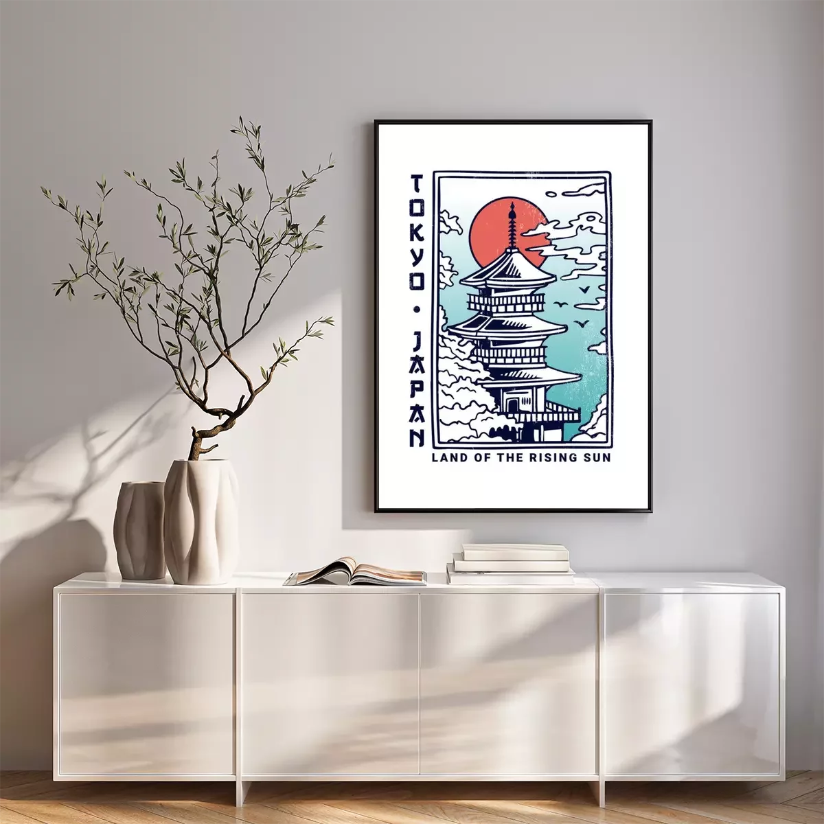 Big waves with the red sun. Vector graphics for t-shirt prints, posters and other uses. Japanese text translation: Make Waves(above), Tokyo(below).