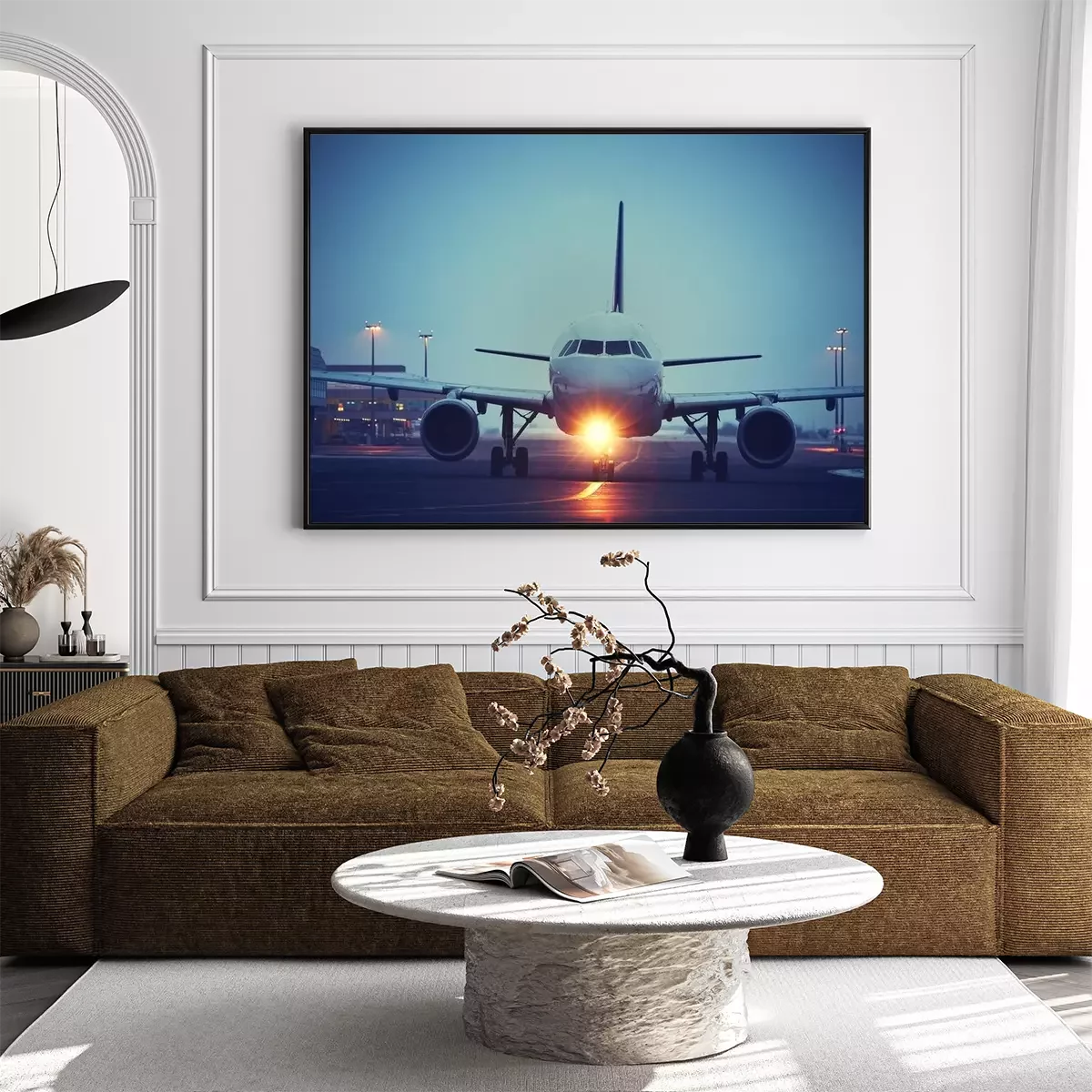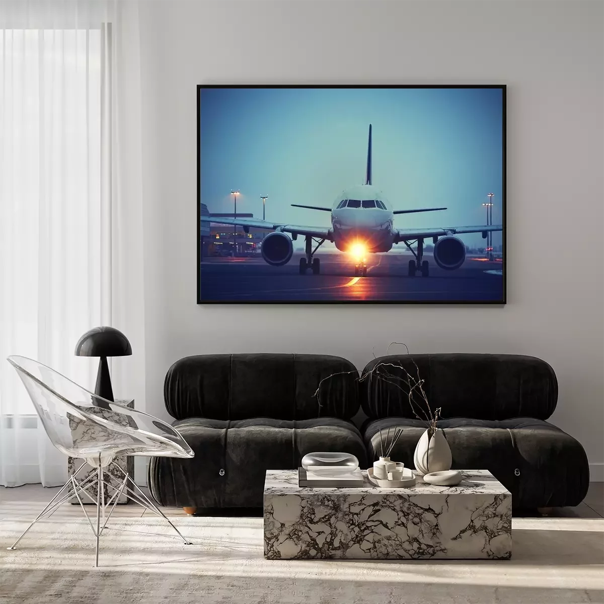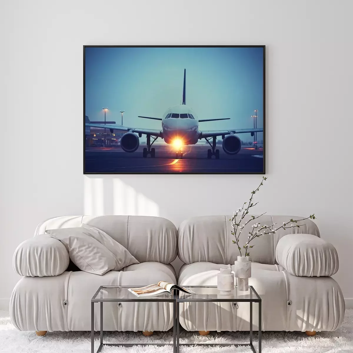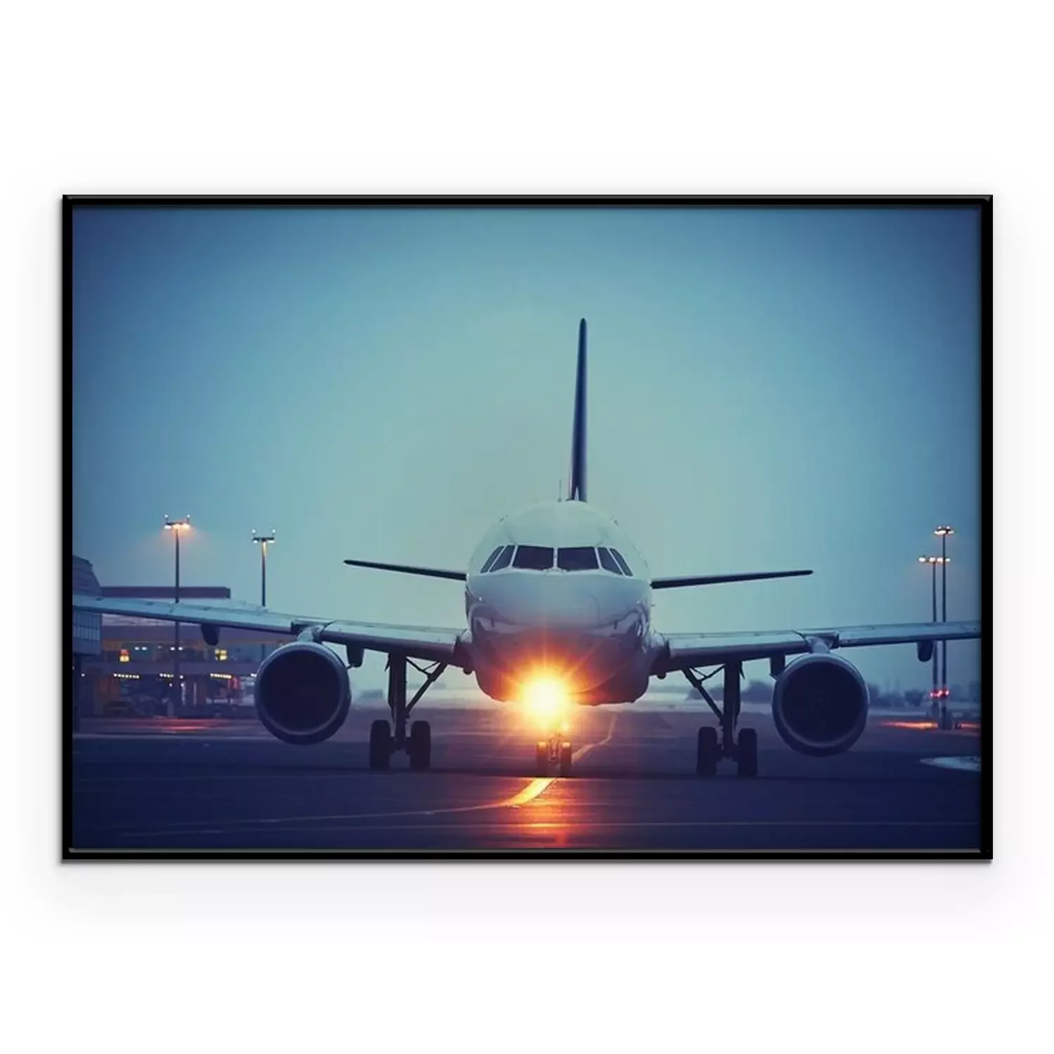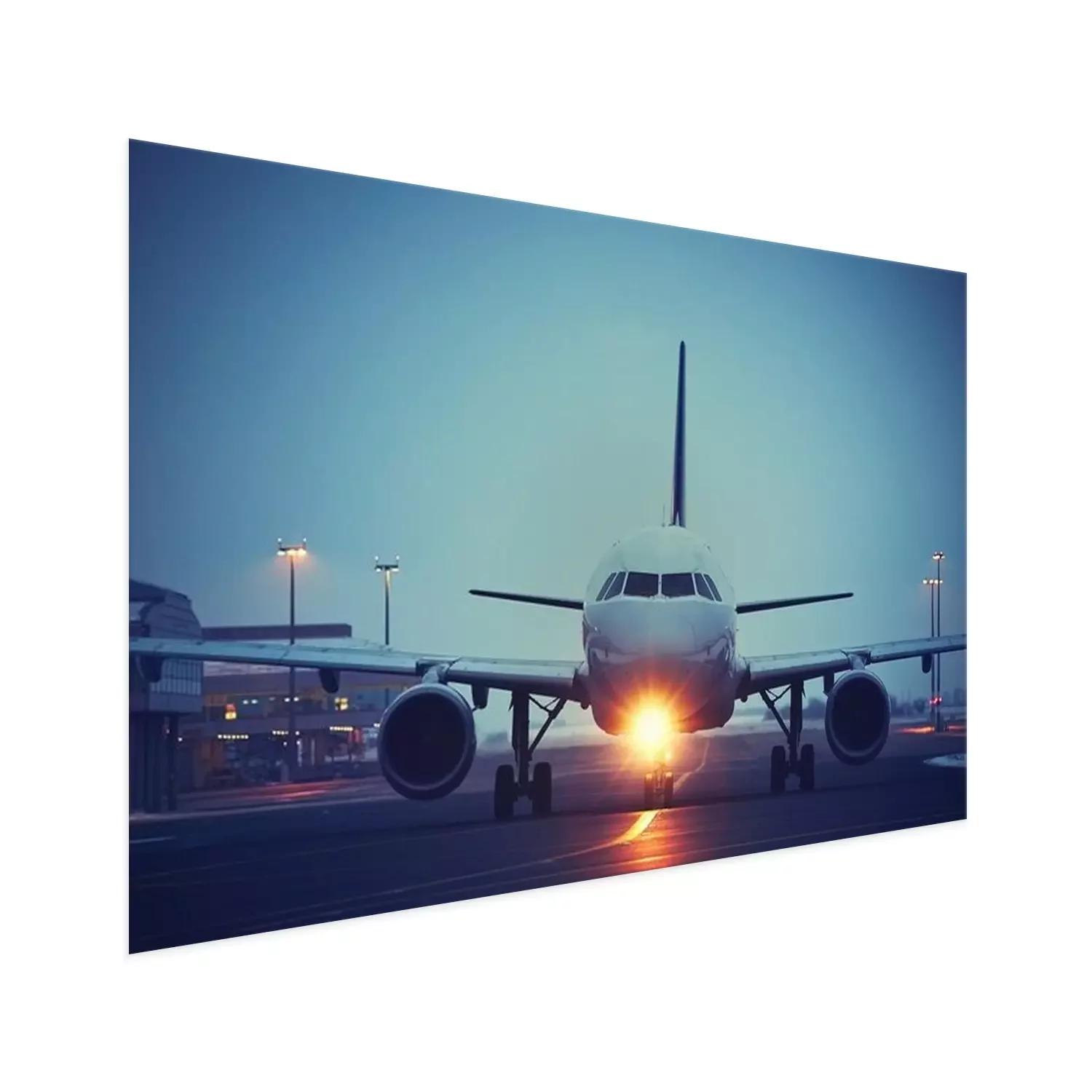 Poster Abendflug mit Flugzeug