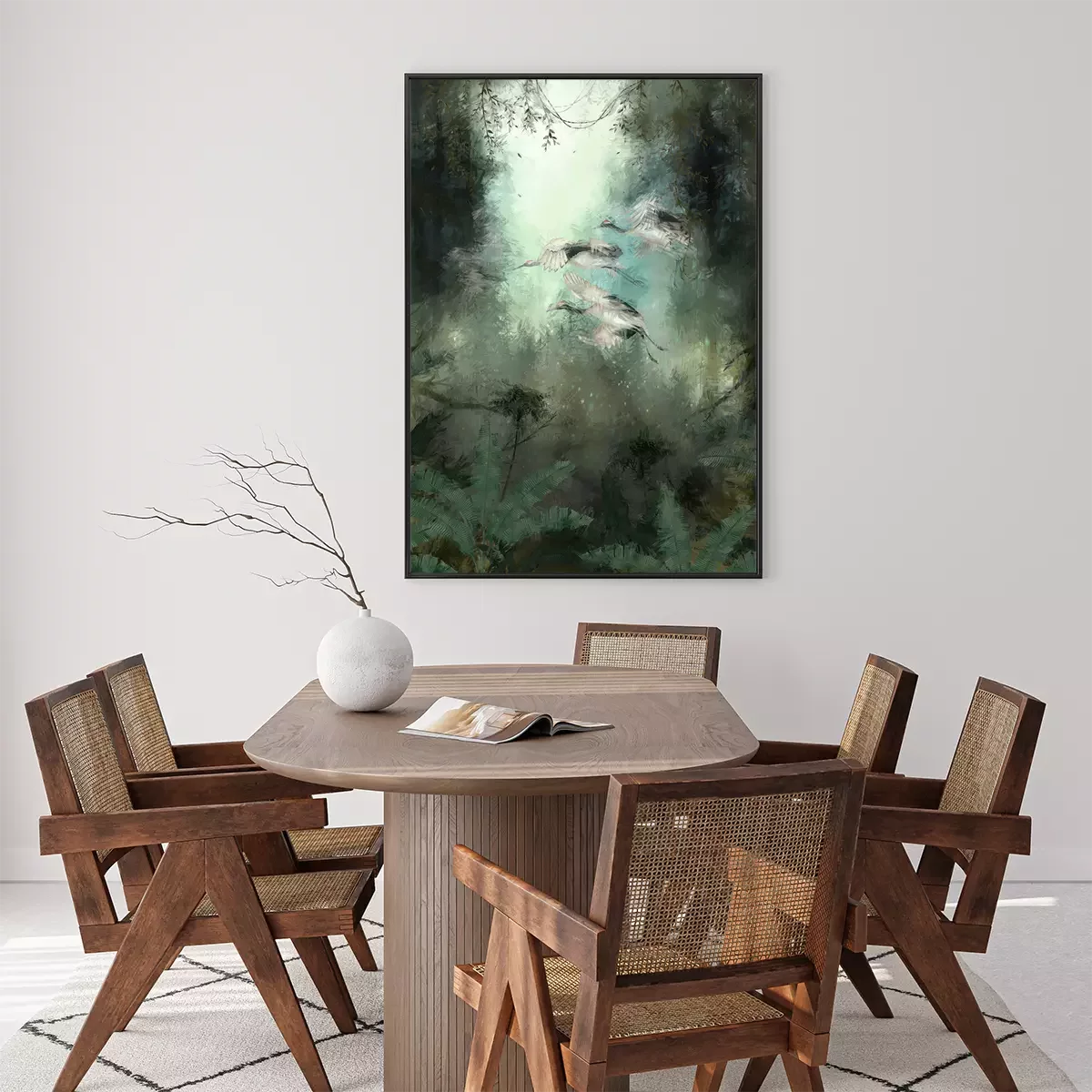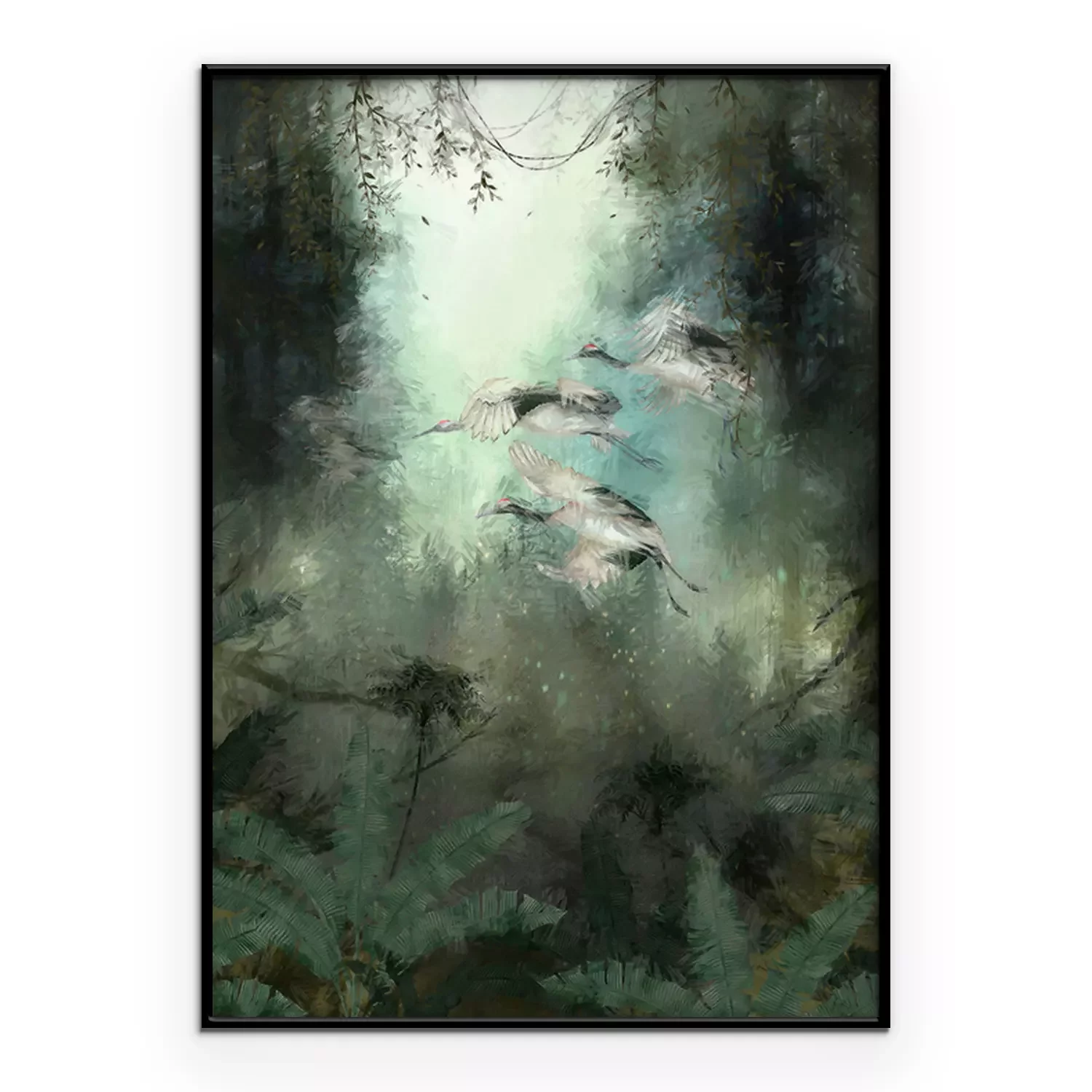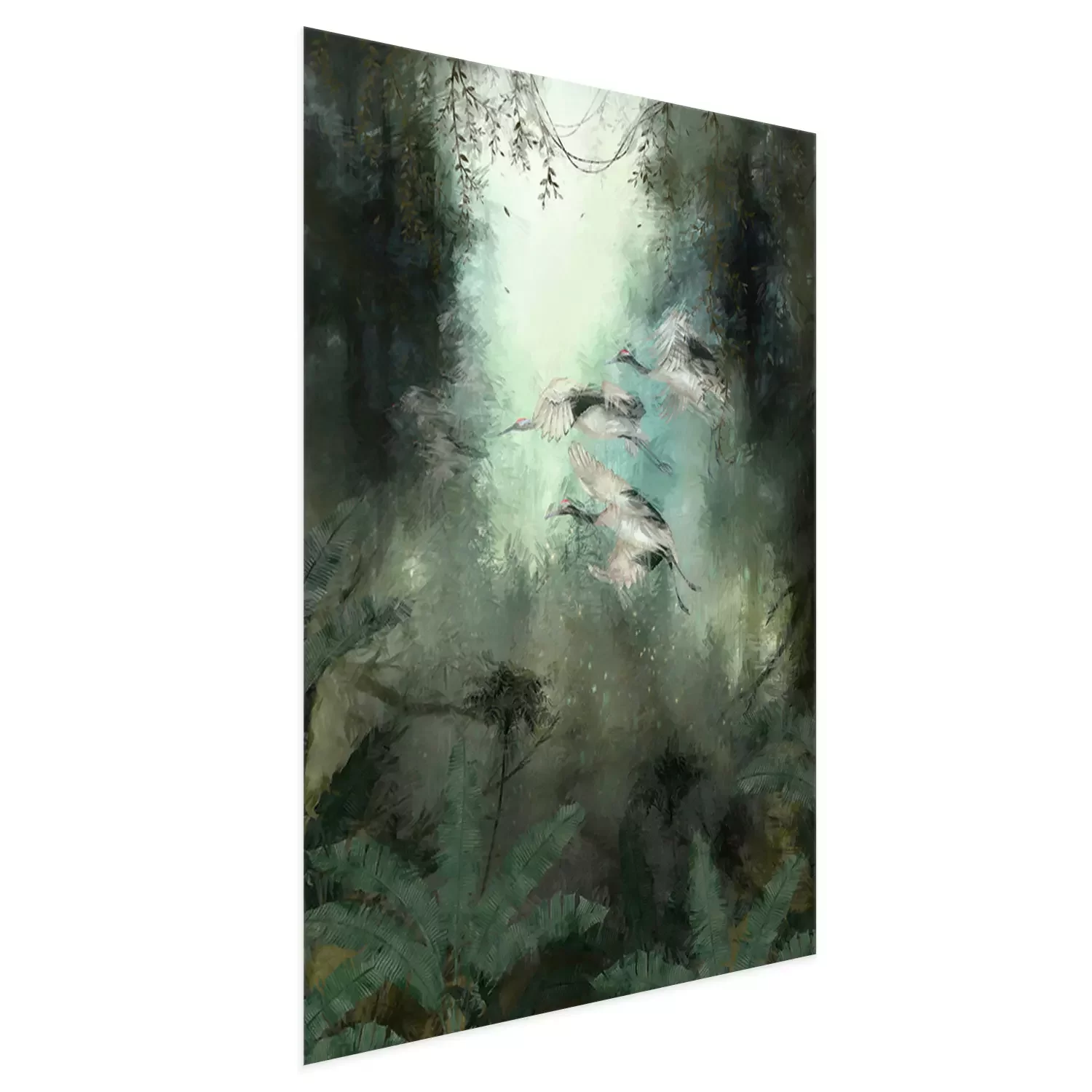 Poster: Abfliegende Vögel im grünen Dschungel