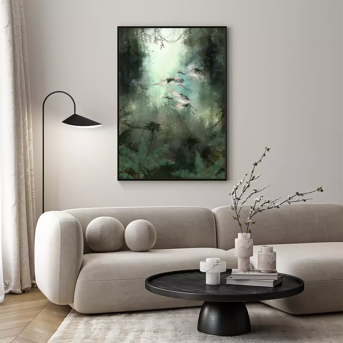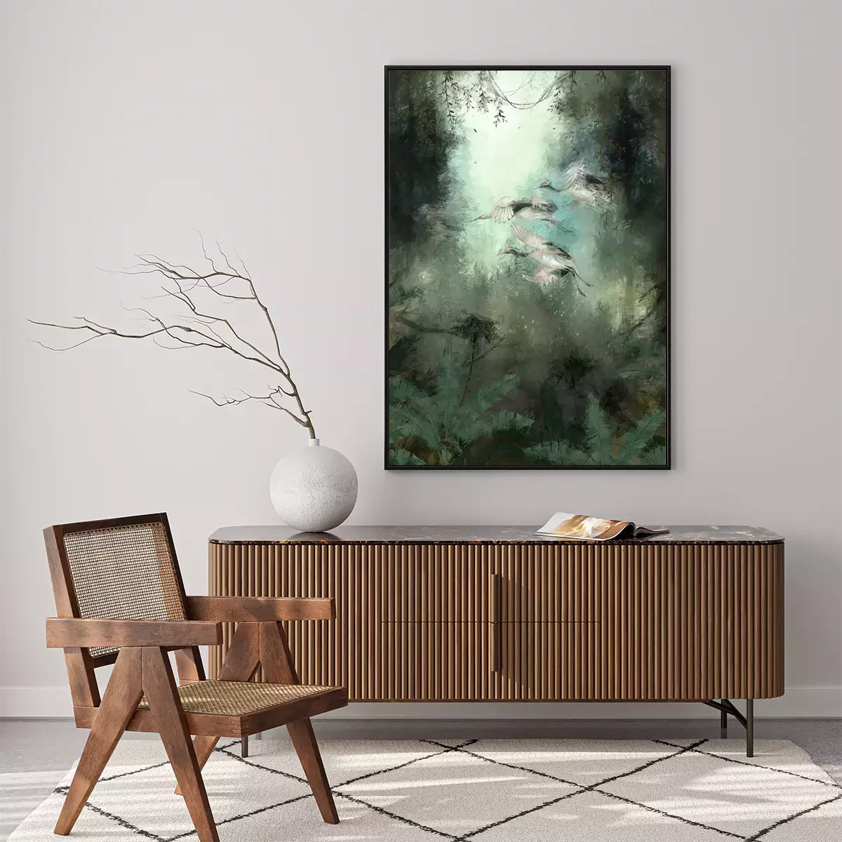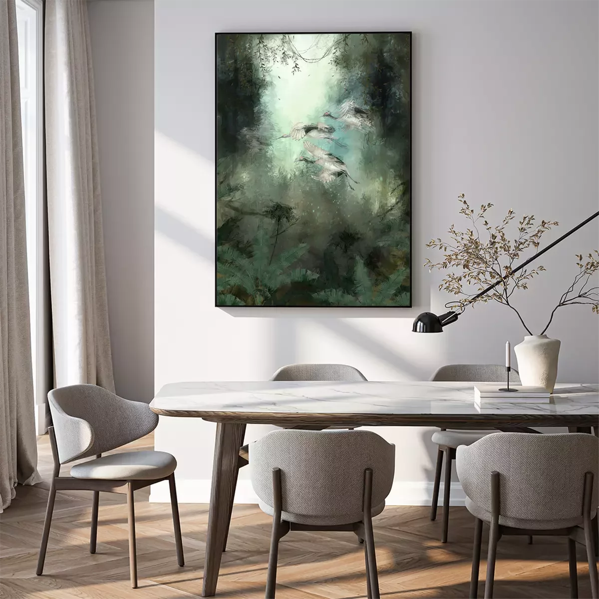Poster: Abfliegende Vögel im grünen Dschungel