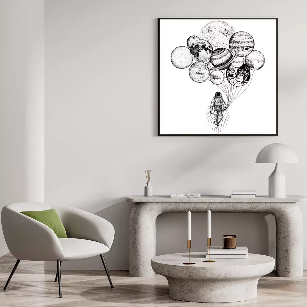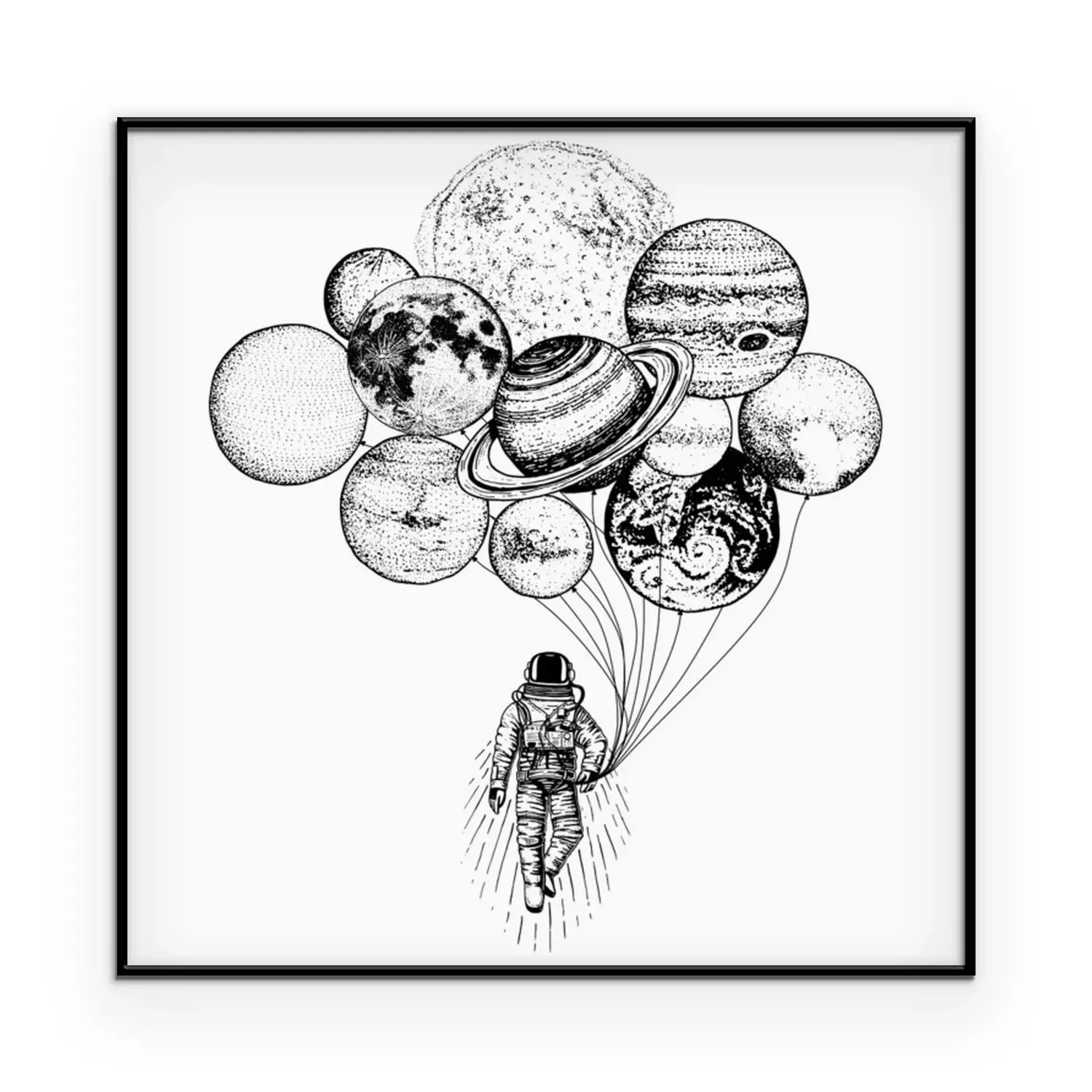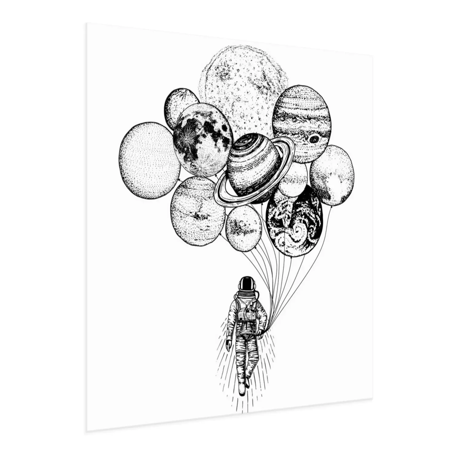 Poster: Abstrakte Zeichnung eines Kosmonauten mit Planeten