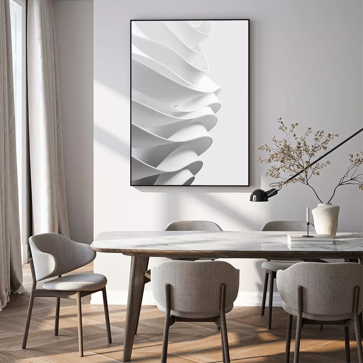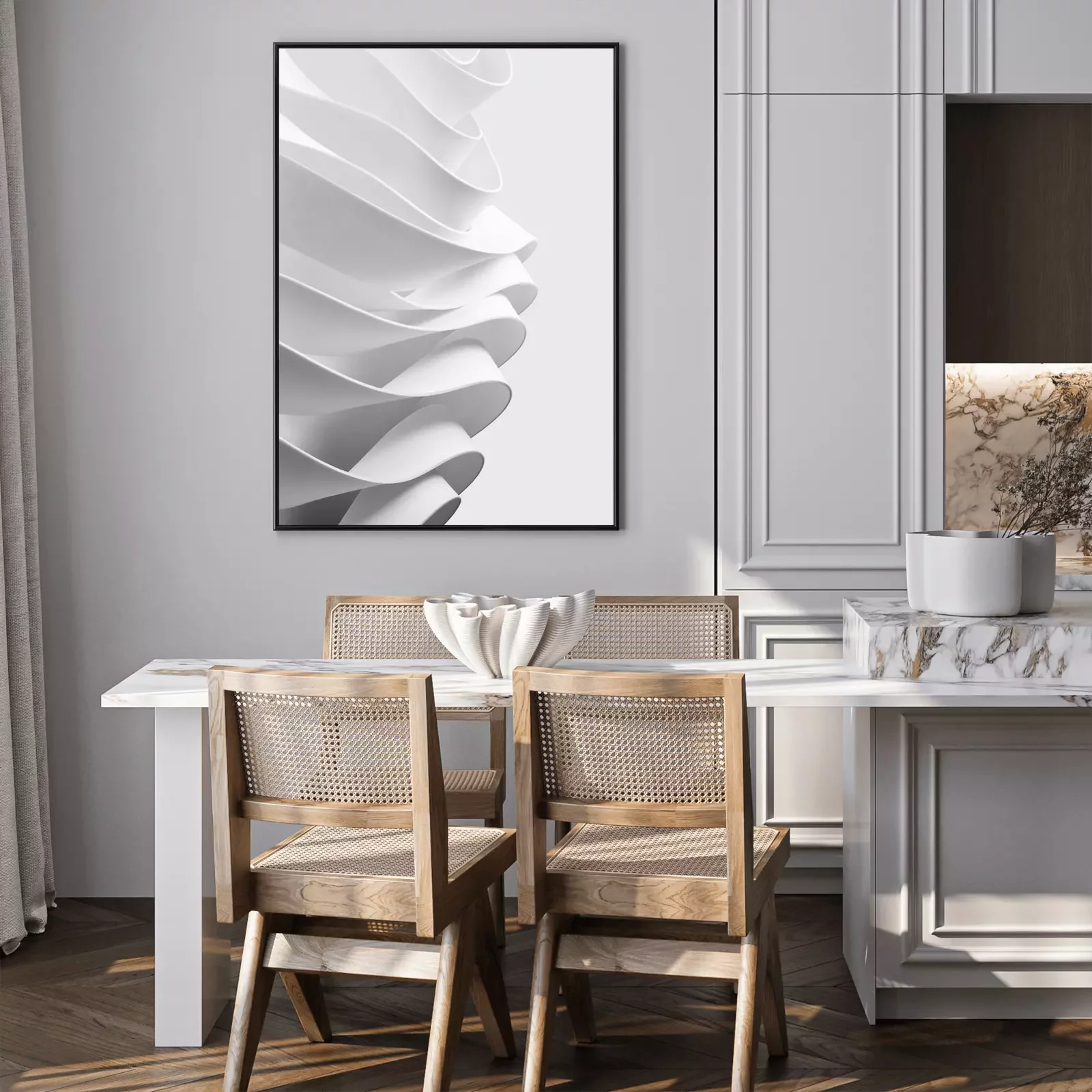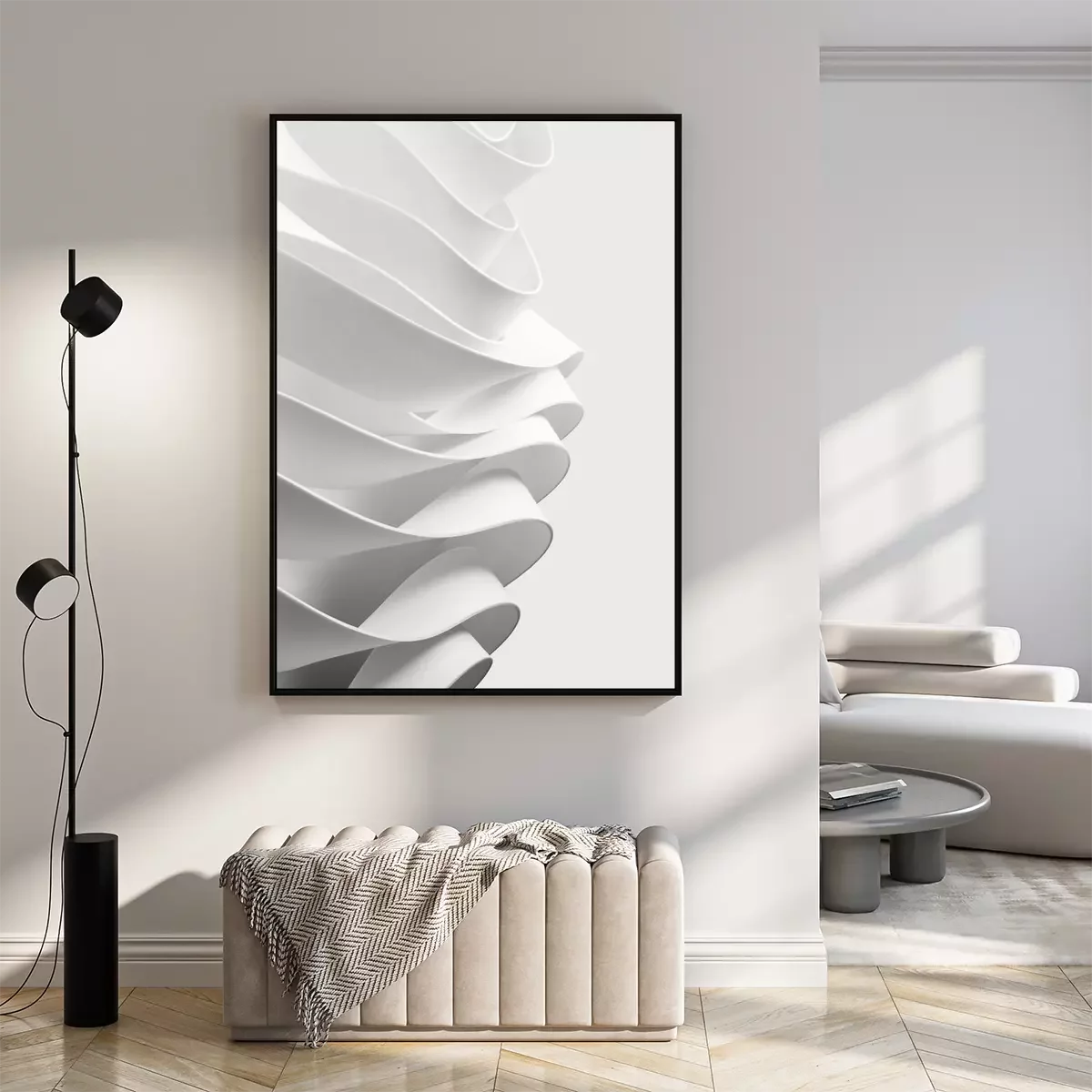 Poster: Abstraktion weiße Reihen von Stoff
