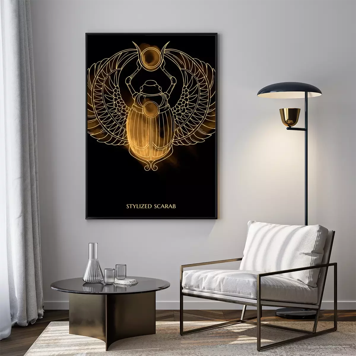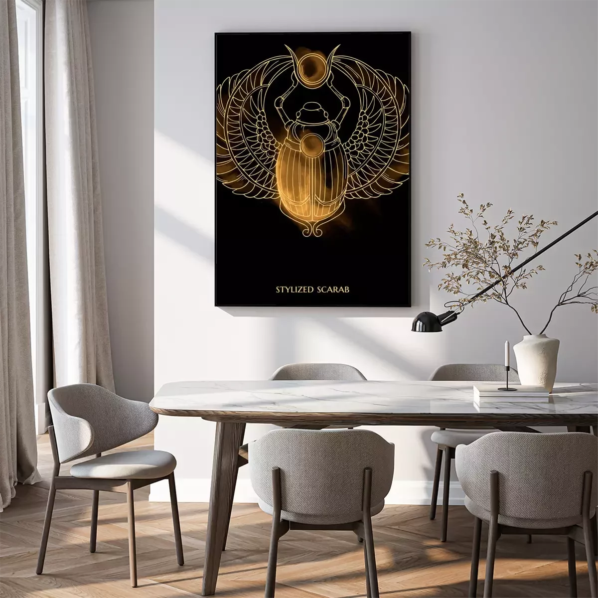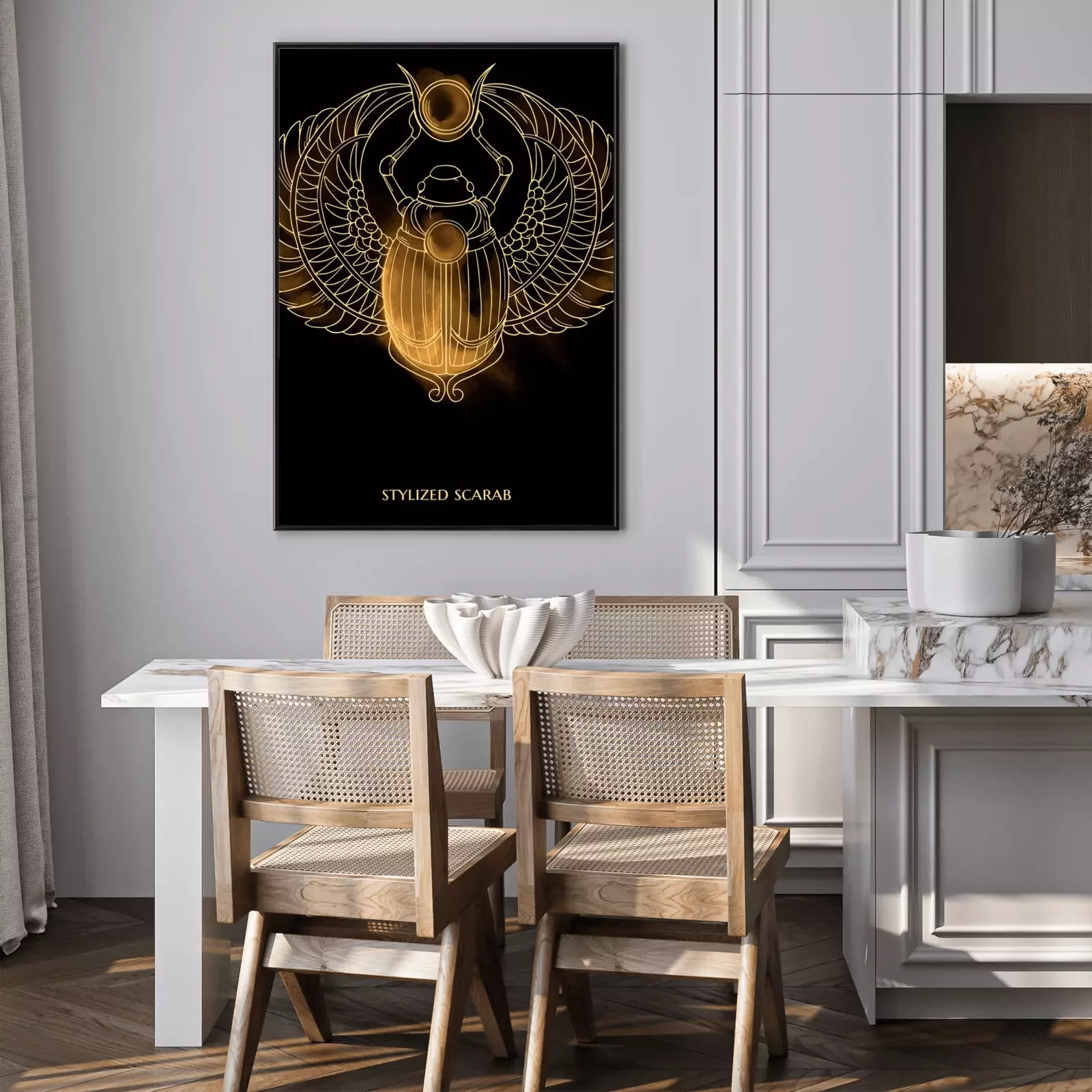 Poster: Ägyptischer Skarabäus auf schwarzem Hintergrund