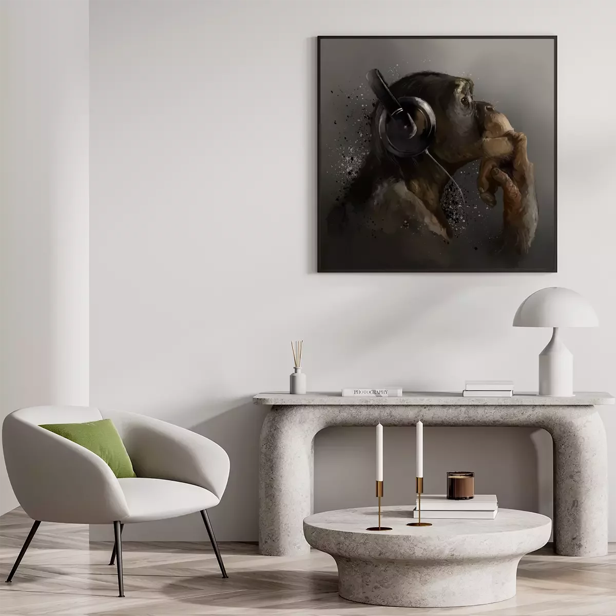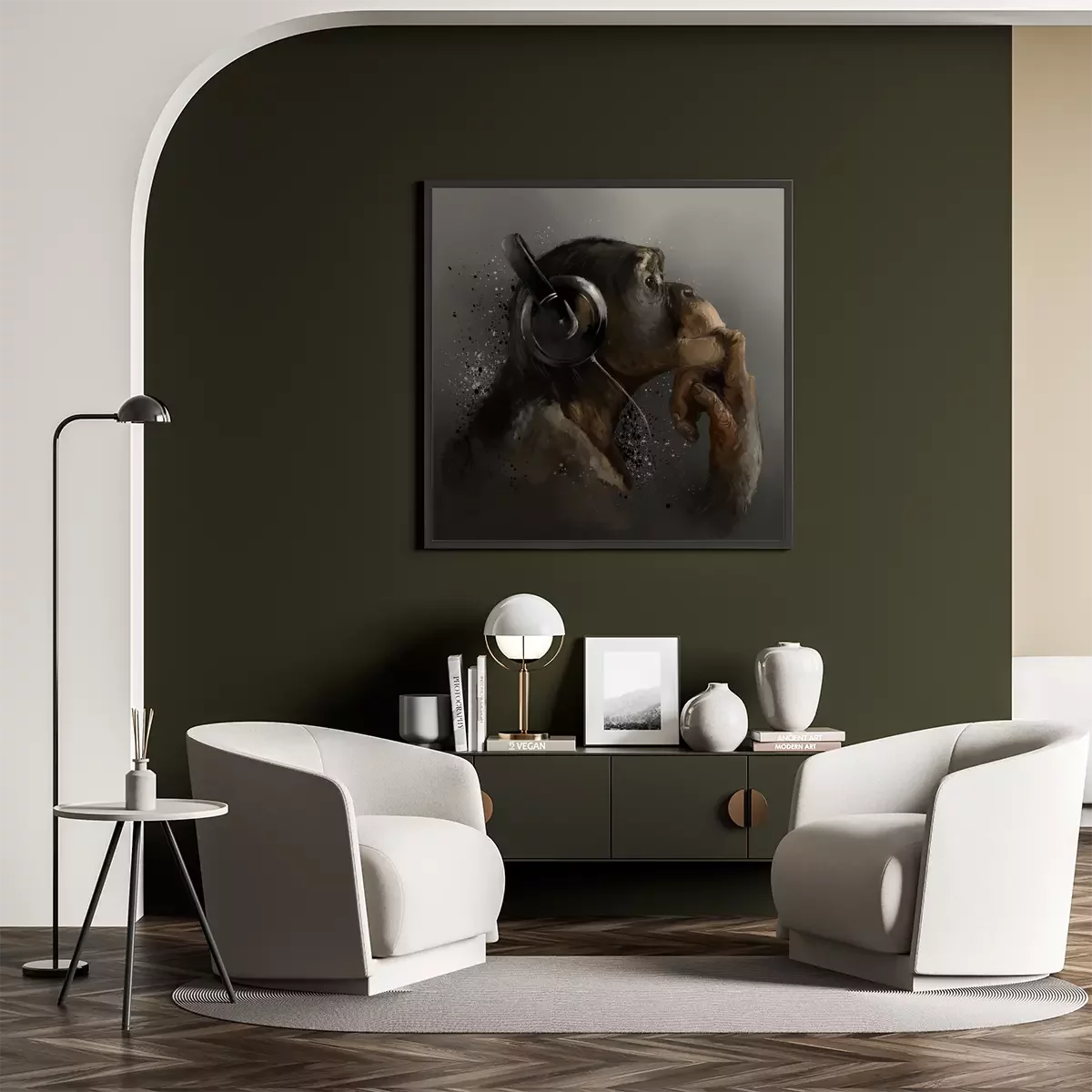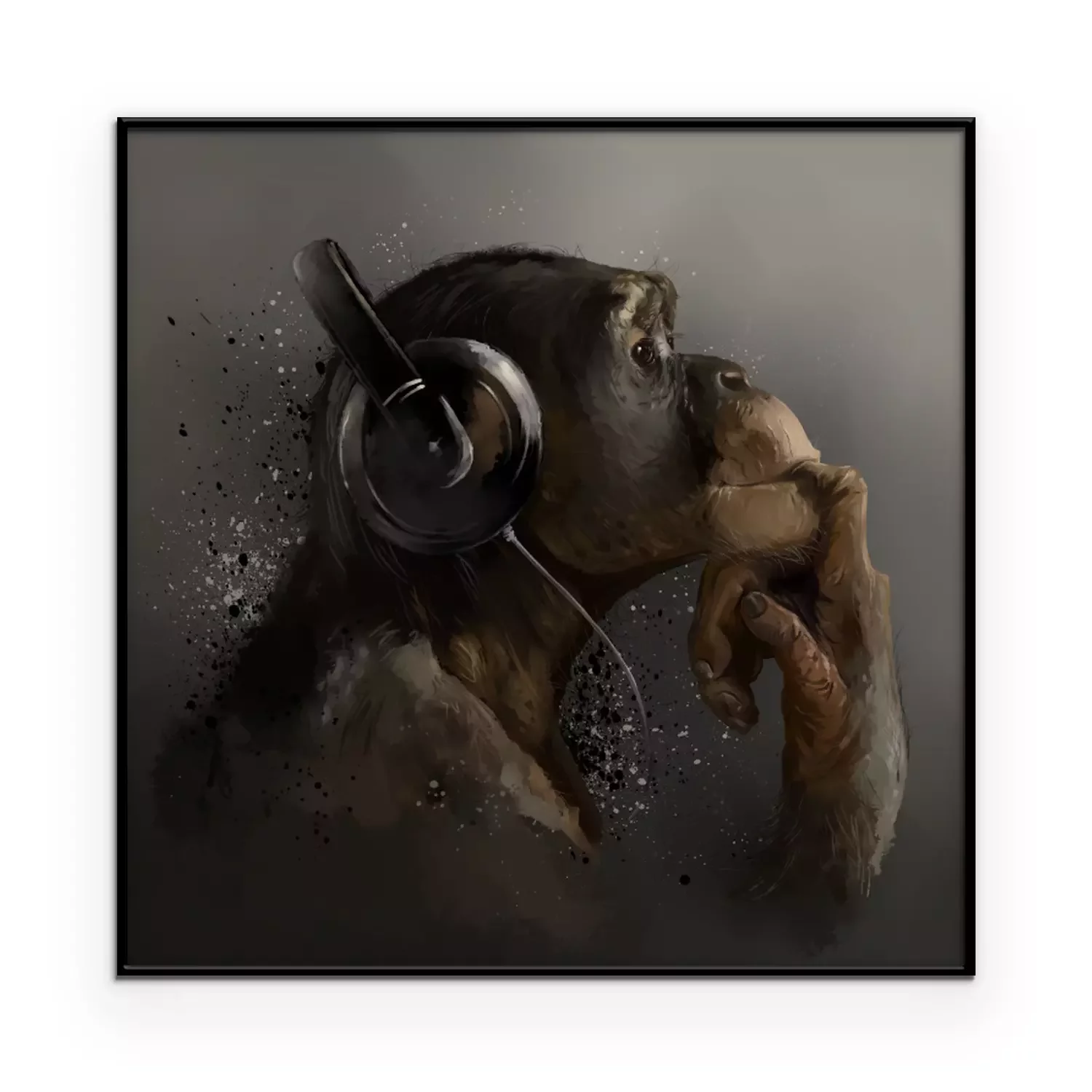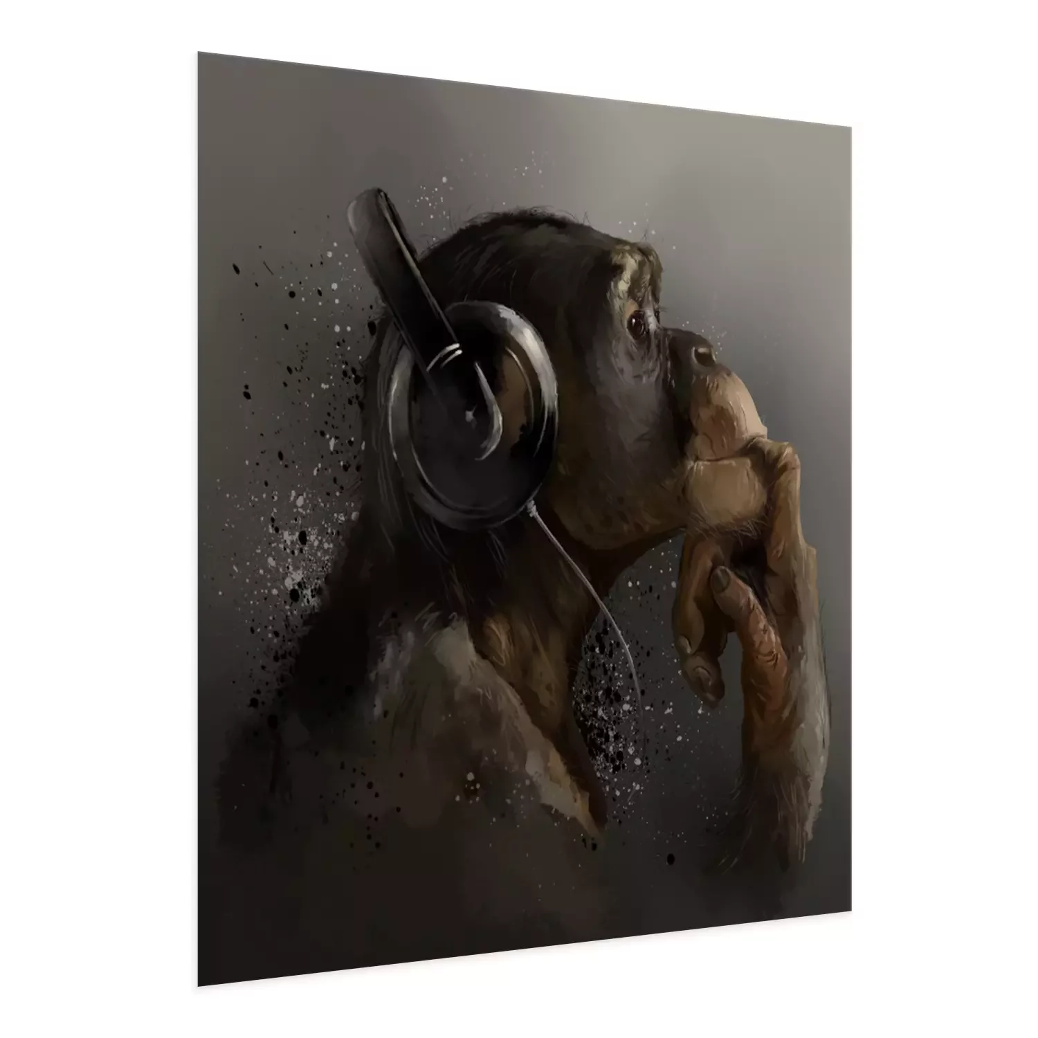 Poster: Affe mit Kopfhörern mit Aquarellfarben gemalt